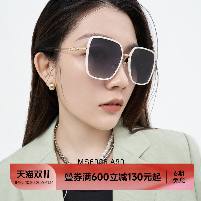 陌森方形大框眼镜太阳镜防晒防紫外线偏光白色墨镜女高级感MS6086