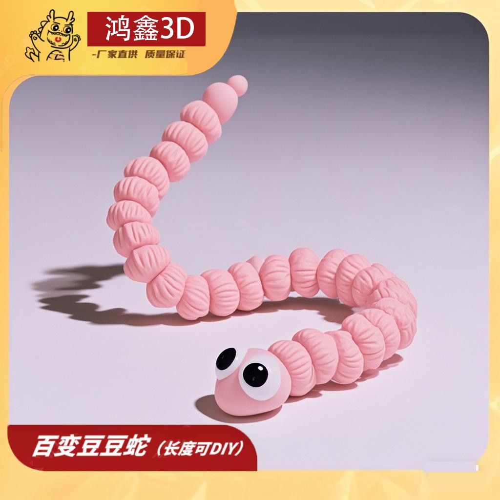 3d打印卷卷蛇玩偶网红豆豆玩具全身关节可动扭扭蛇2025年仿真模型