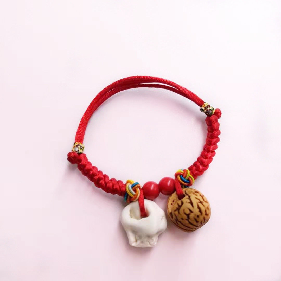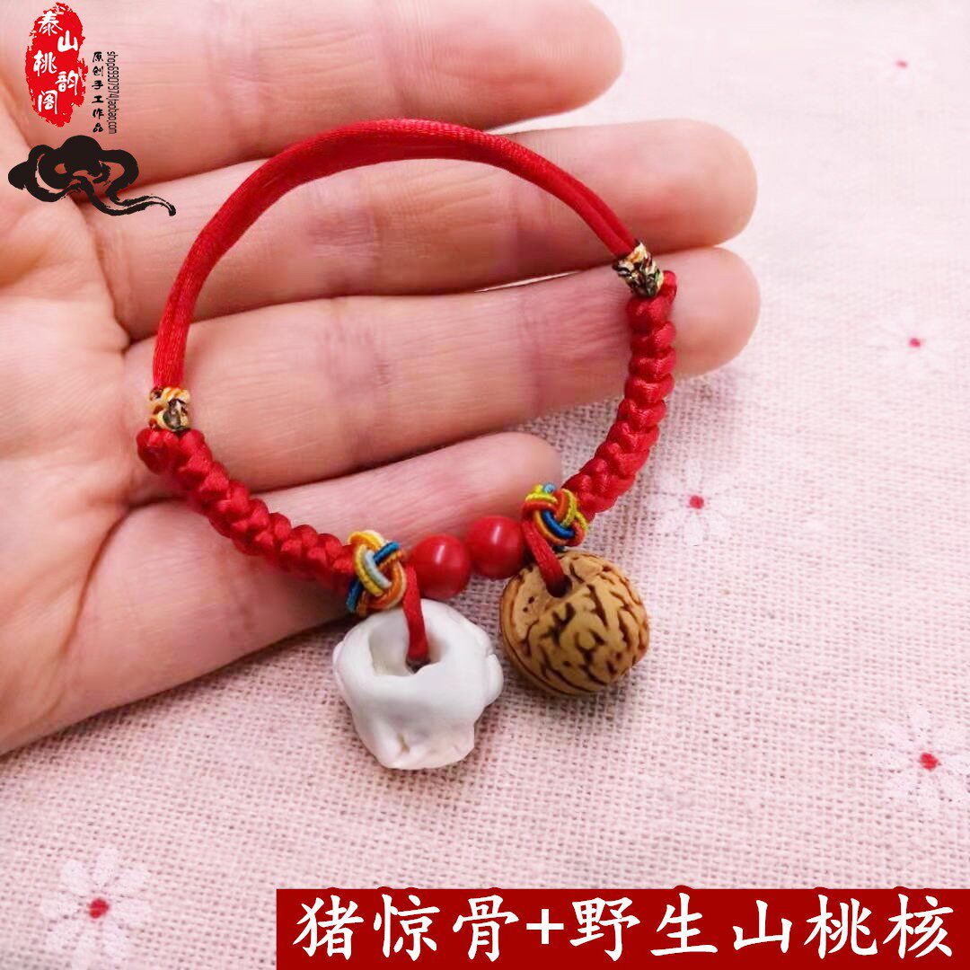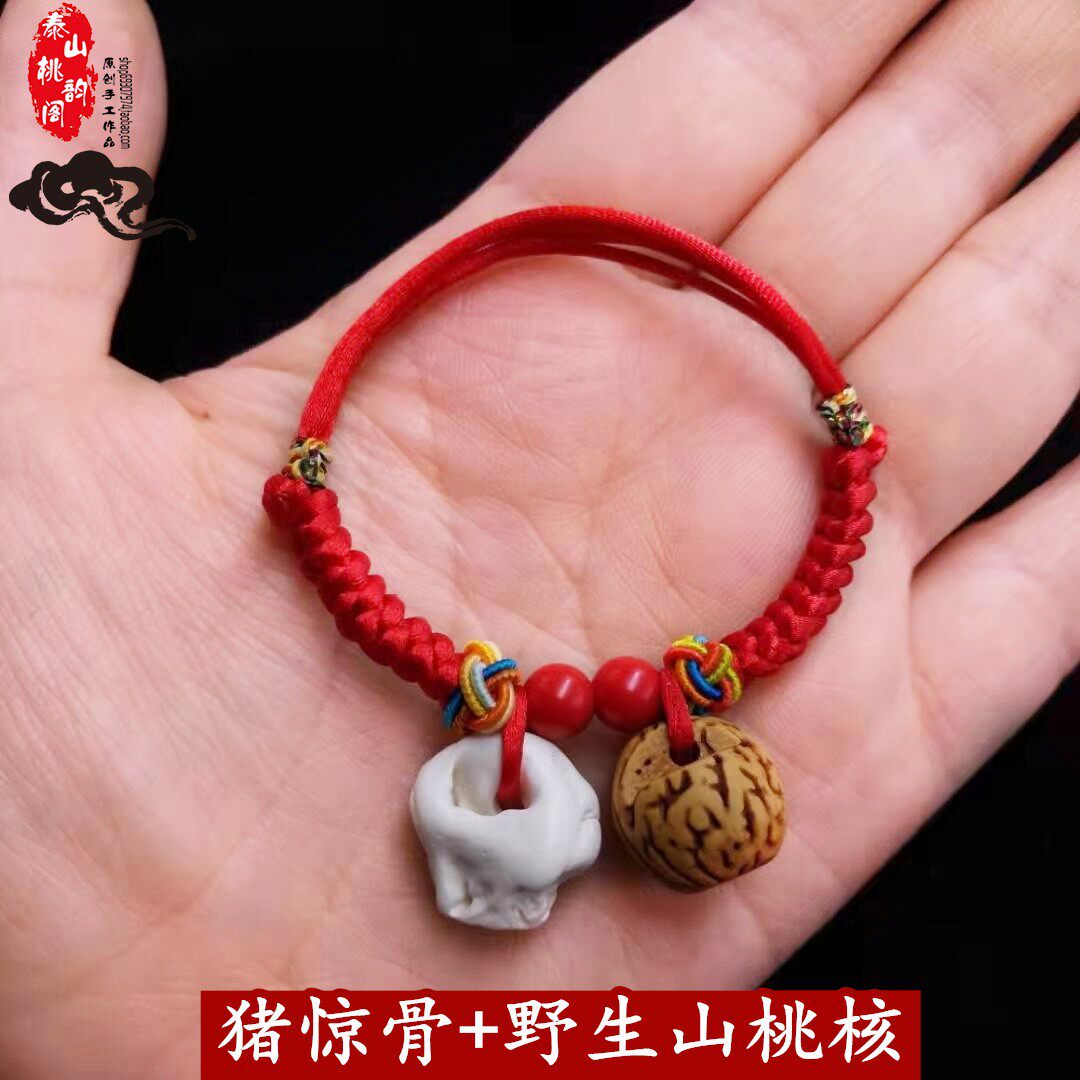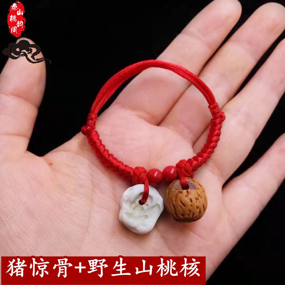 婴儿童压惊手链男女宝宝防惊吓桃木桃核胡篮端午节五彩绳猪惊狗牙