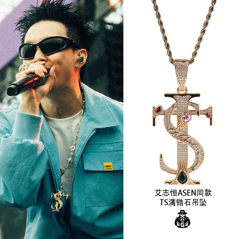 艾志恒Asen同款STK满钻吊坠rapper镶钻项链y2k个性嘻哈街头配饰男