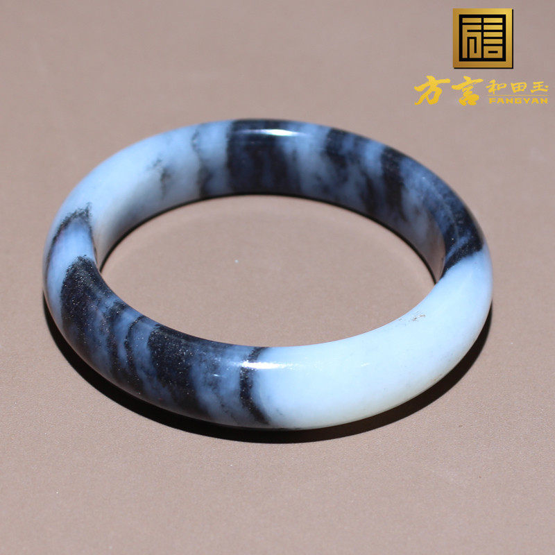 重量级方言和田玉新疆温润细腻聚墨意境青花籽料卡57mm精美手镯O8