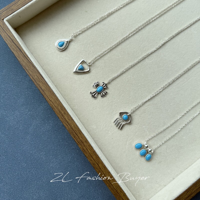 现货Ensage日本纯银绿松石吊坠水滴三角十字架眼睛项链高级复古