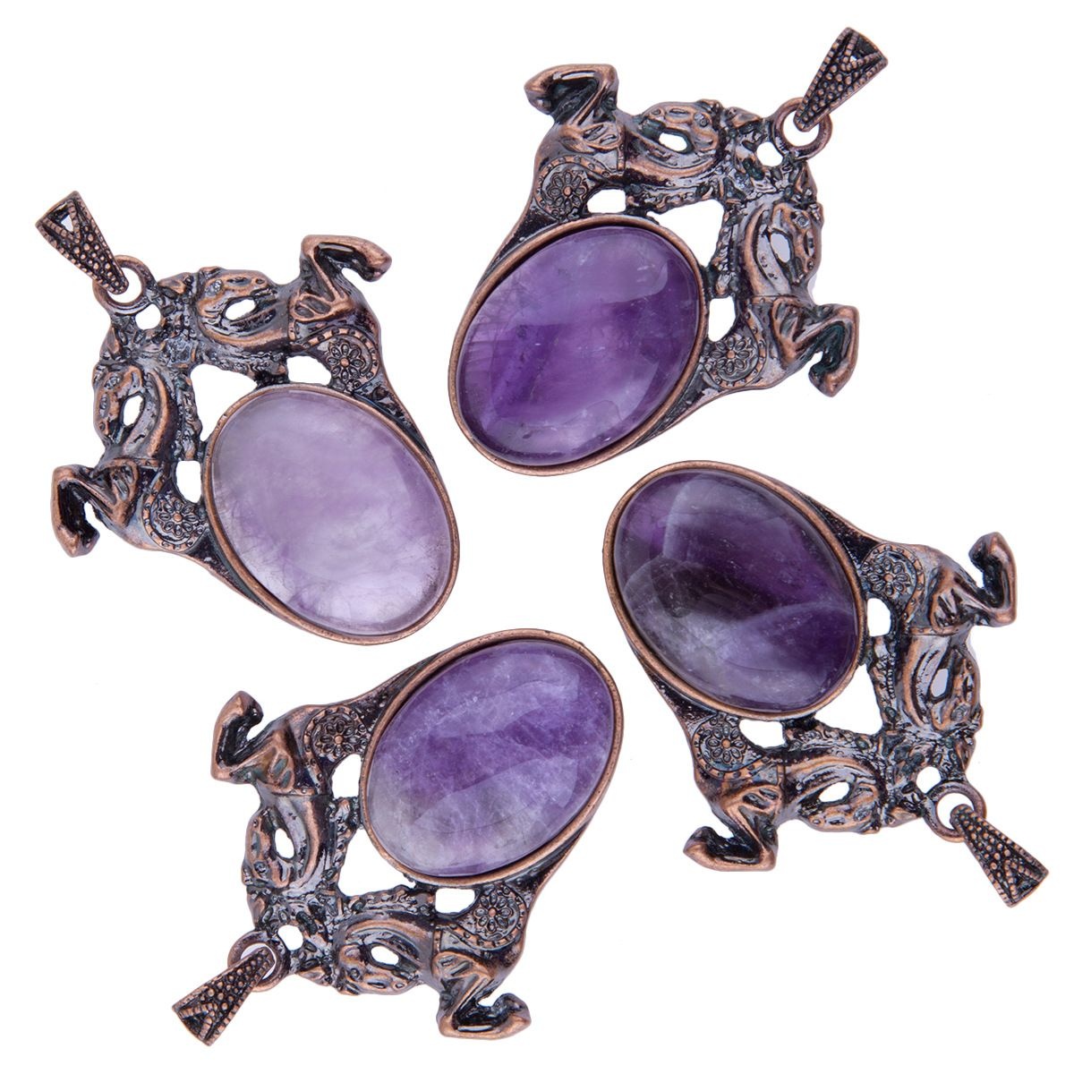 天然紫水晶蛋白石蛋面双马吊坠 古铜色复古款坠子