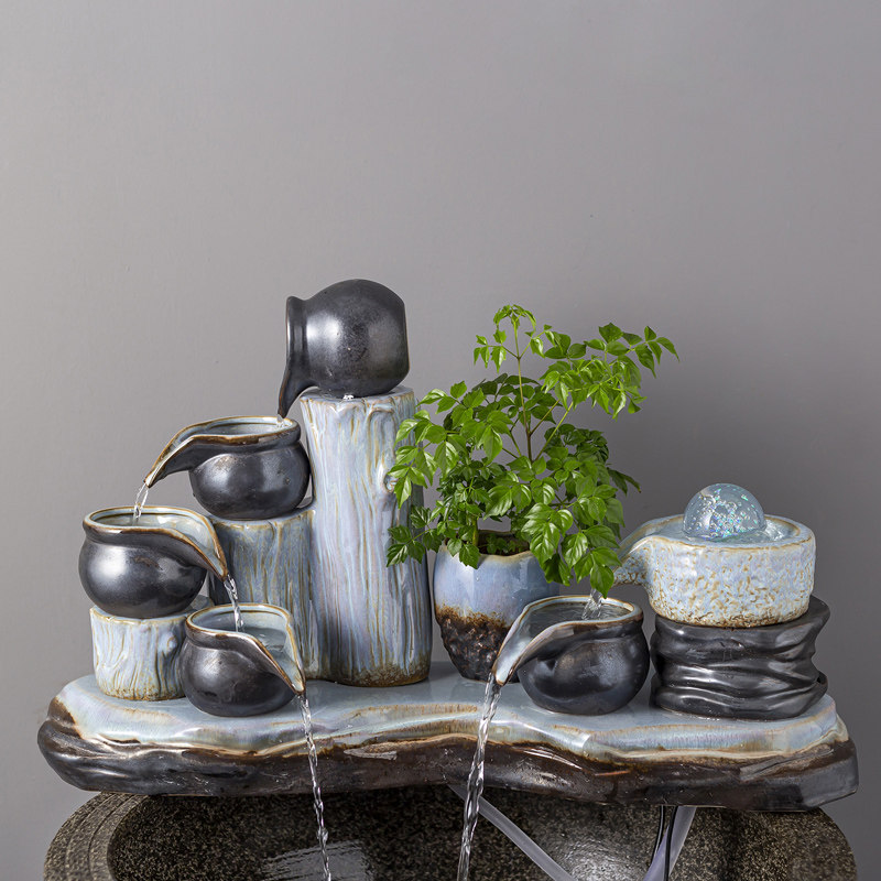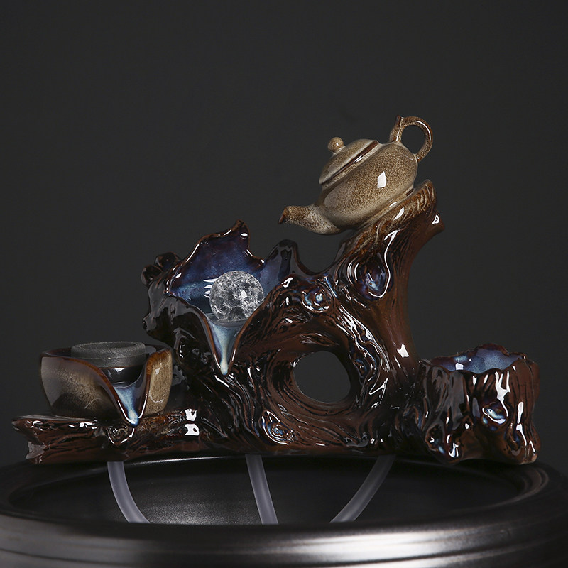 创意陶瓷流水器diy鱼缸循环水养鱼过滤器石槽流水喷泉水景摆件