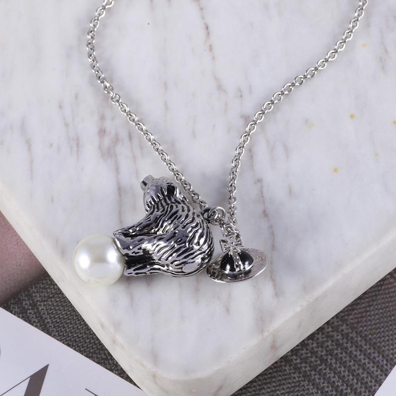 欧美中性风男女同款小众复古北极熊镶嵌珍珠立体土星球项链毛衣链