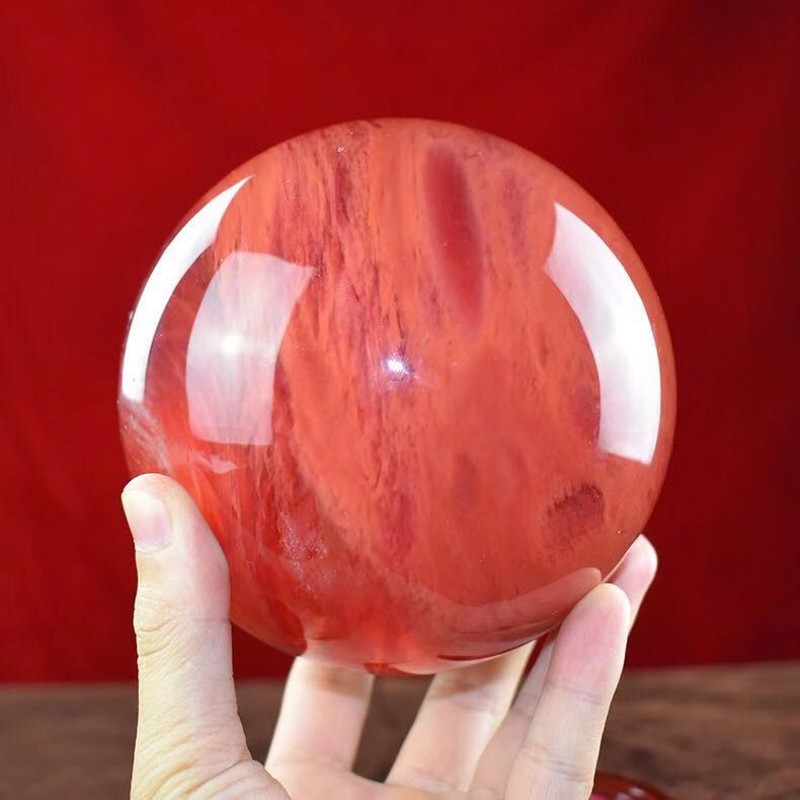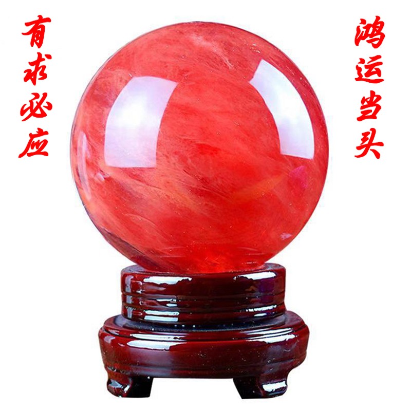 天然红色水晶球摆件招财聚财原矿石客厅办公室店铺收银台鸿运当头