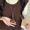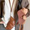 棕色系列~可爱kt猫豹纹皮质磁吸眼镜夹零钱耳机包长款挂脖配饰女