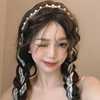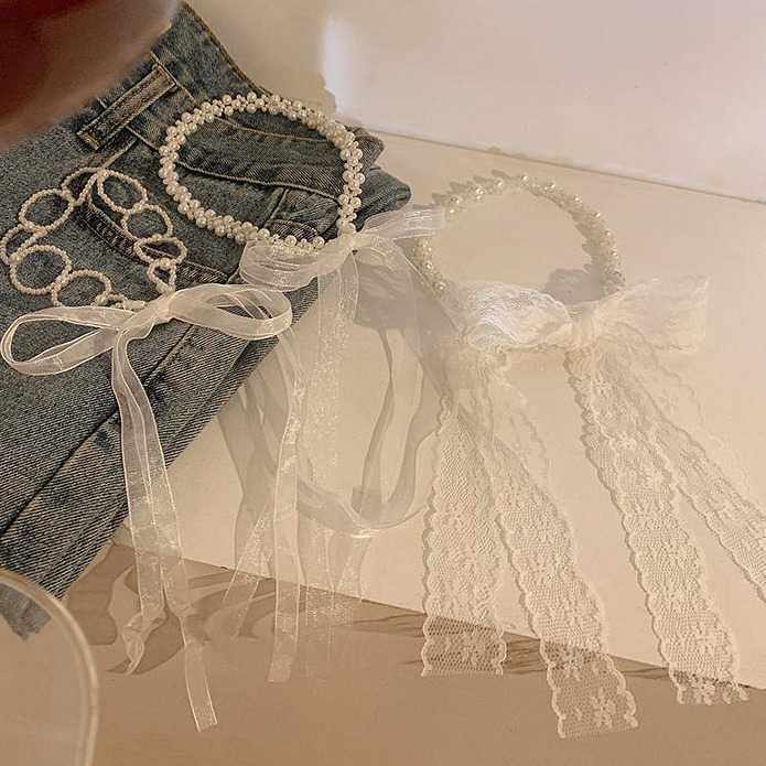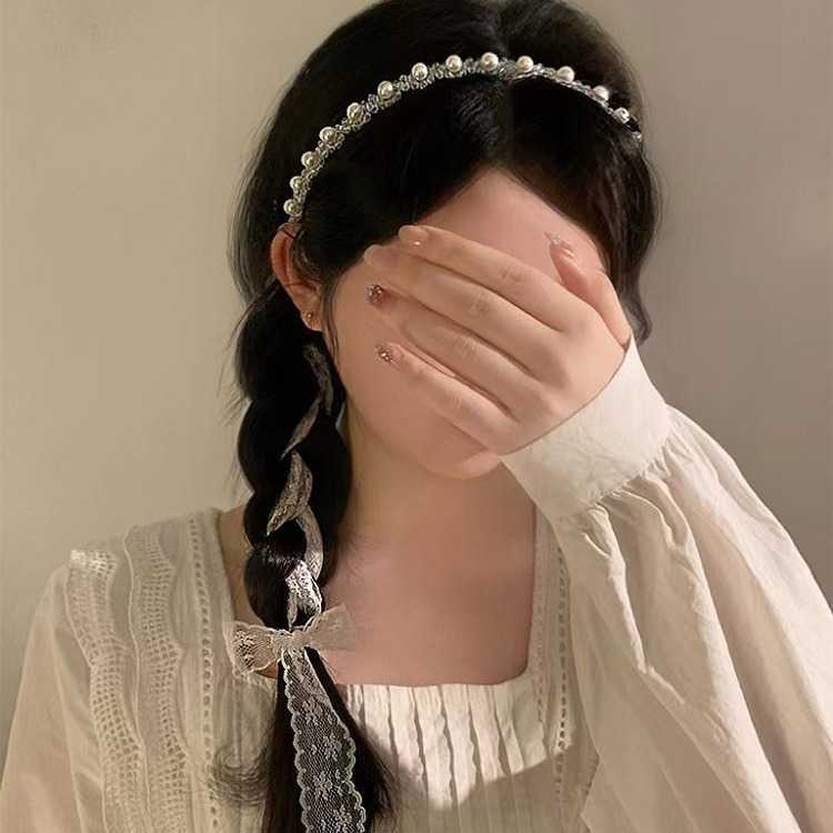 超仙白色蕾丝水晶珍珠发带女绑发森系甜美飘带法式丝带发箍头饰