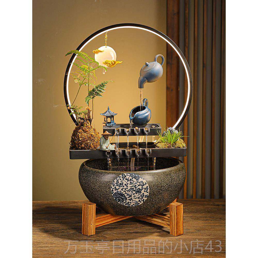 高档水摆件循环水招财观鱼缸创意居家生财办公室客厅开景业乔迁礼