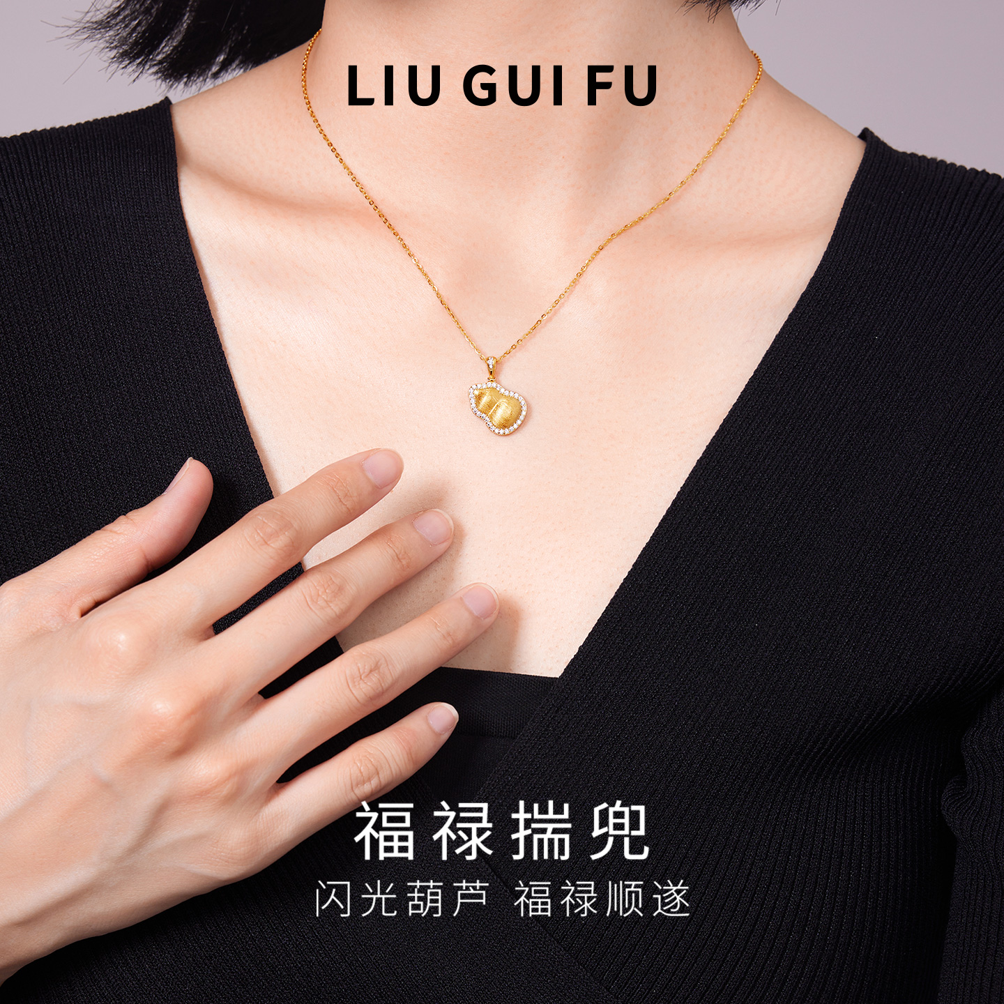 六桂福纯银黄金色项链女新中式福禄双全小葫芦通体纯银黄金色套链