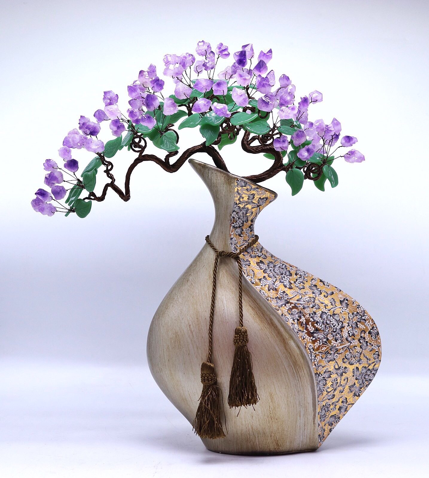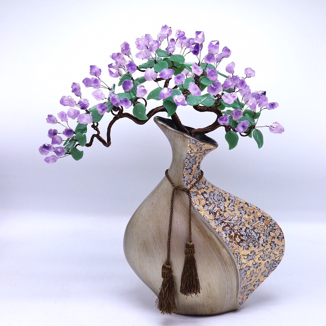 紫水晶,黄果、红玉果迎客松摇钱树摆件!适用于多种风格场景摆放