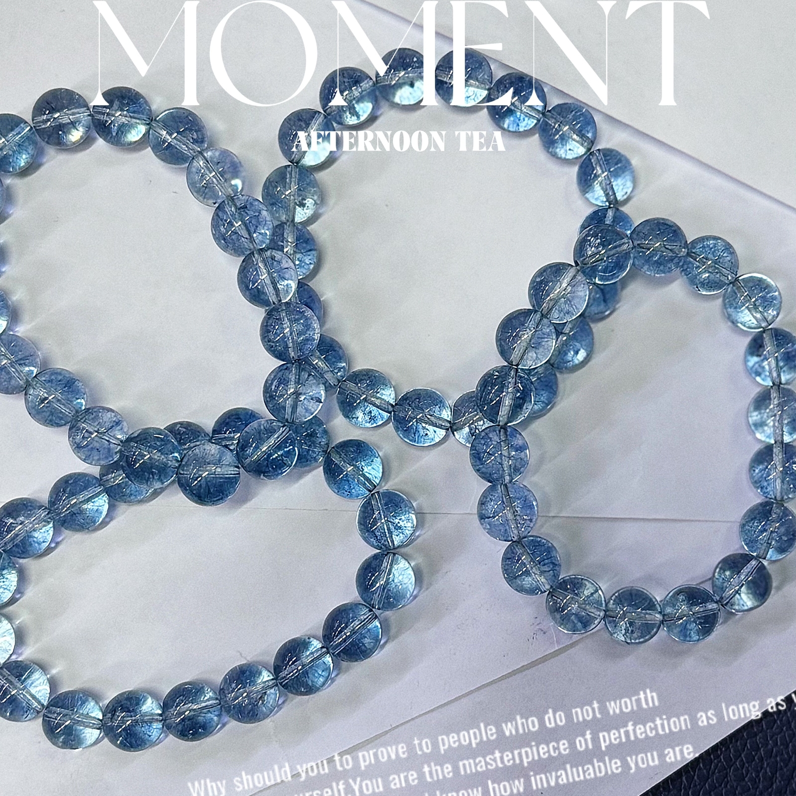 【转运】海蓝宝爆花水晶本命年手串手链优化二代蓝色佛珠情侣款