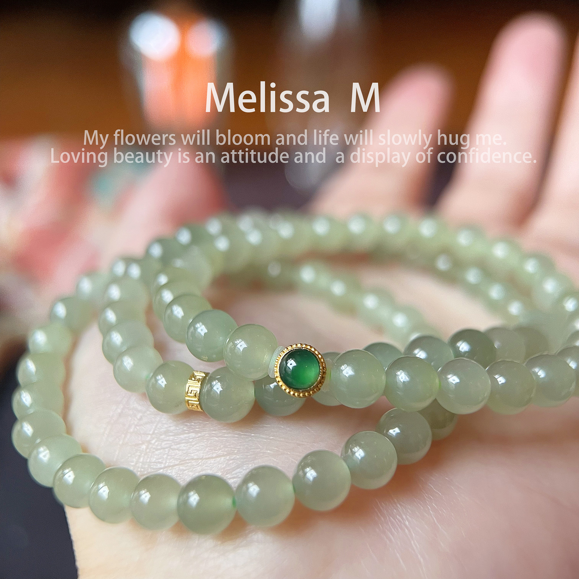 天然和田玉晴水+18K金古法老黄金镶嵌冰种翡翠手链手串手饰送礼