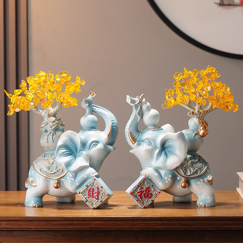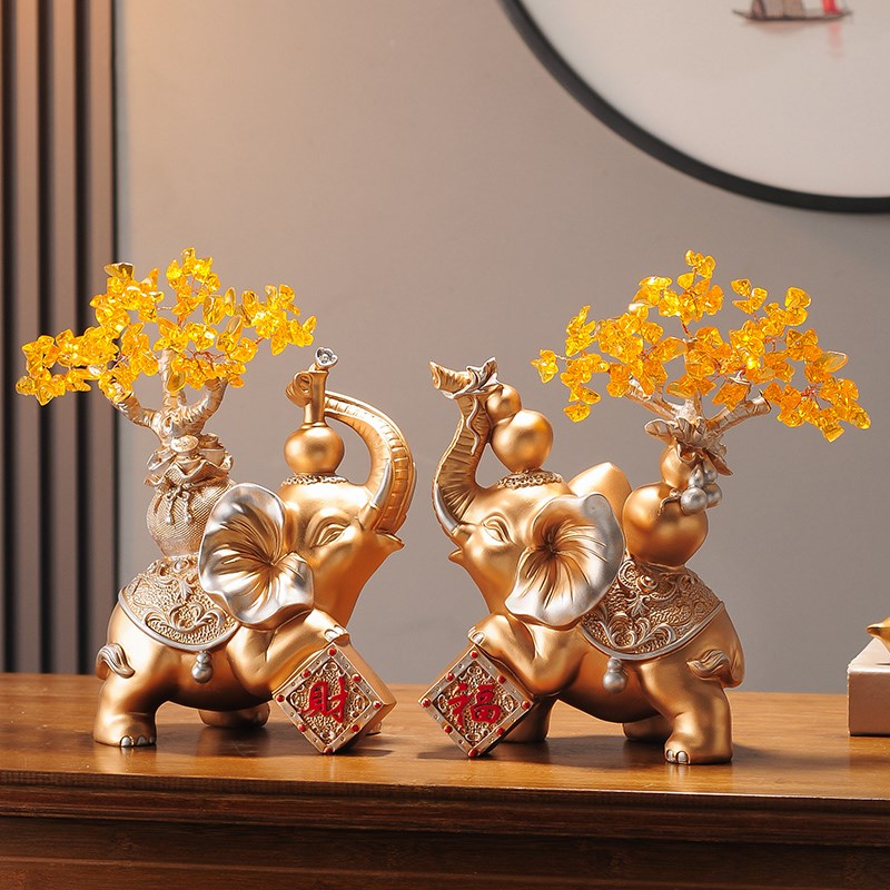 大象摆件一对发财树玄关客厅酒柜电视柜乔迁新房送礼品新家居饰品