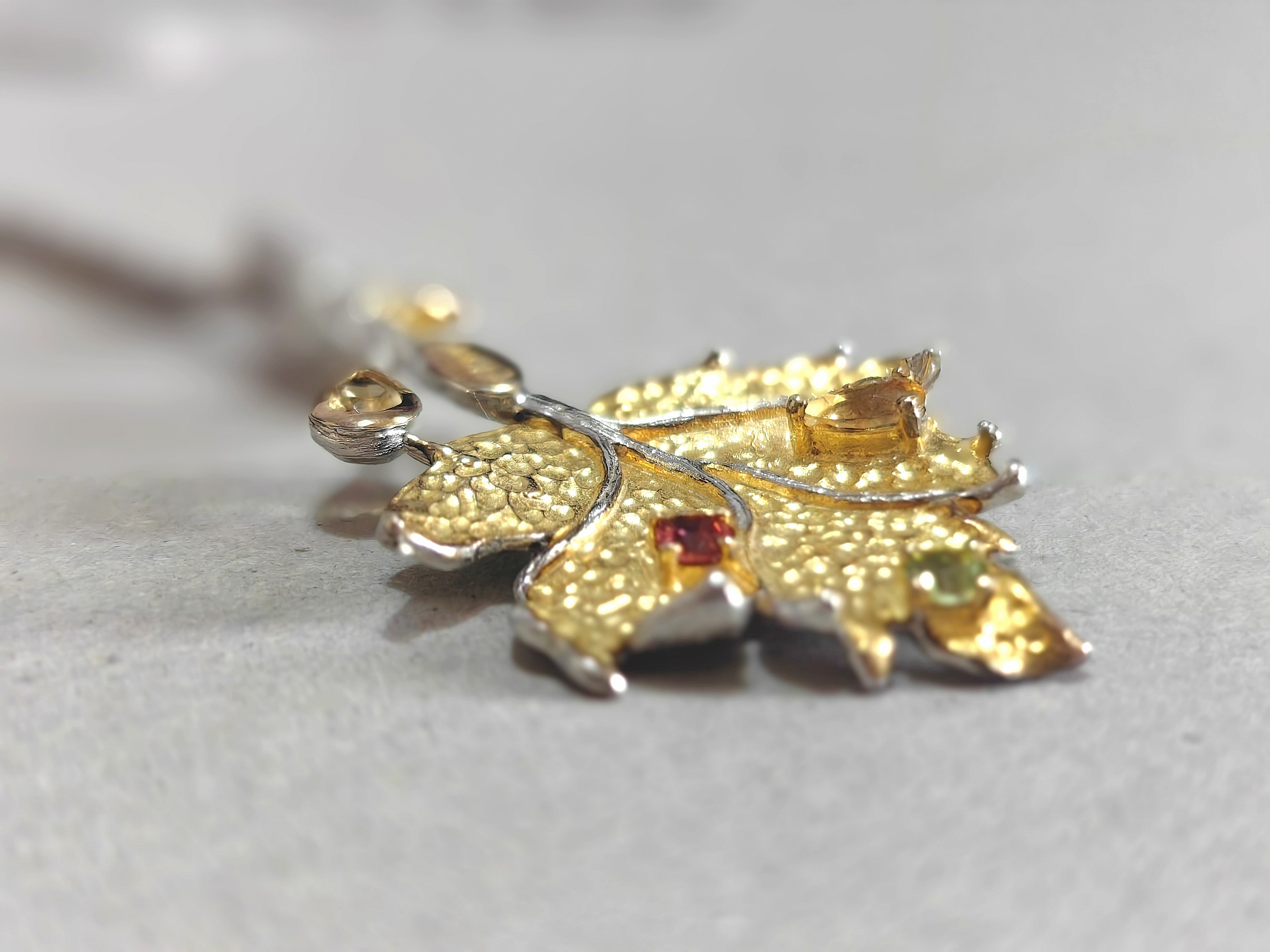 FAN CYYOU原创设计925银枫叶项链天然黄水晶橄榄石法式女简约气质
