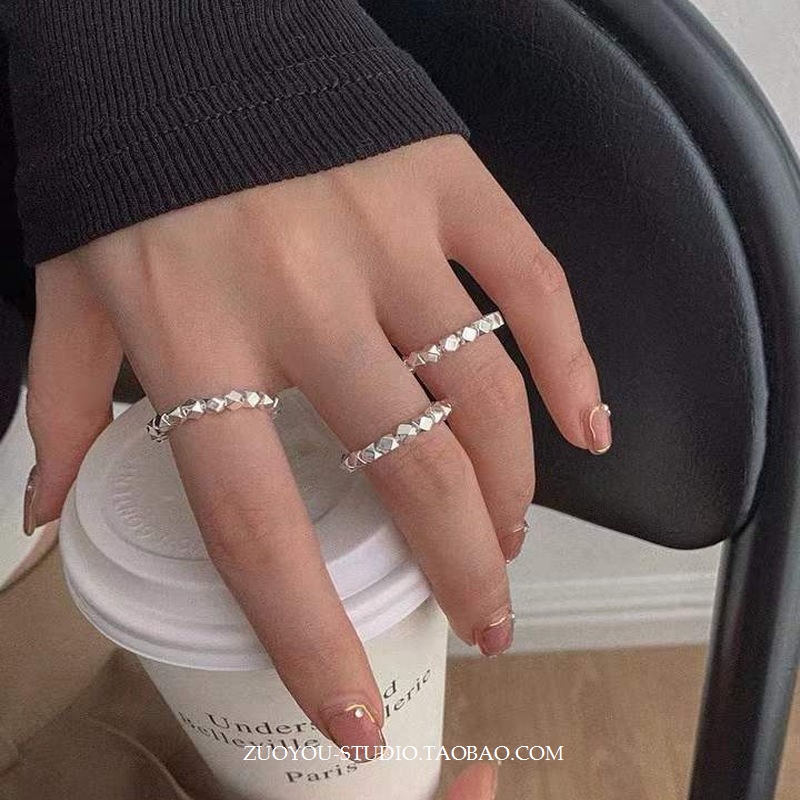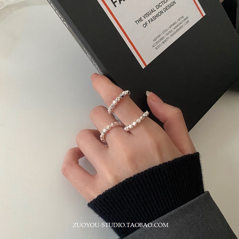 钛钢不掉色INS潮小众碎银几两戒指女时尚百搭气质素圈开口食指戒