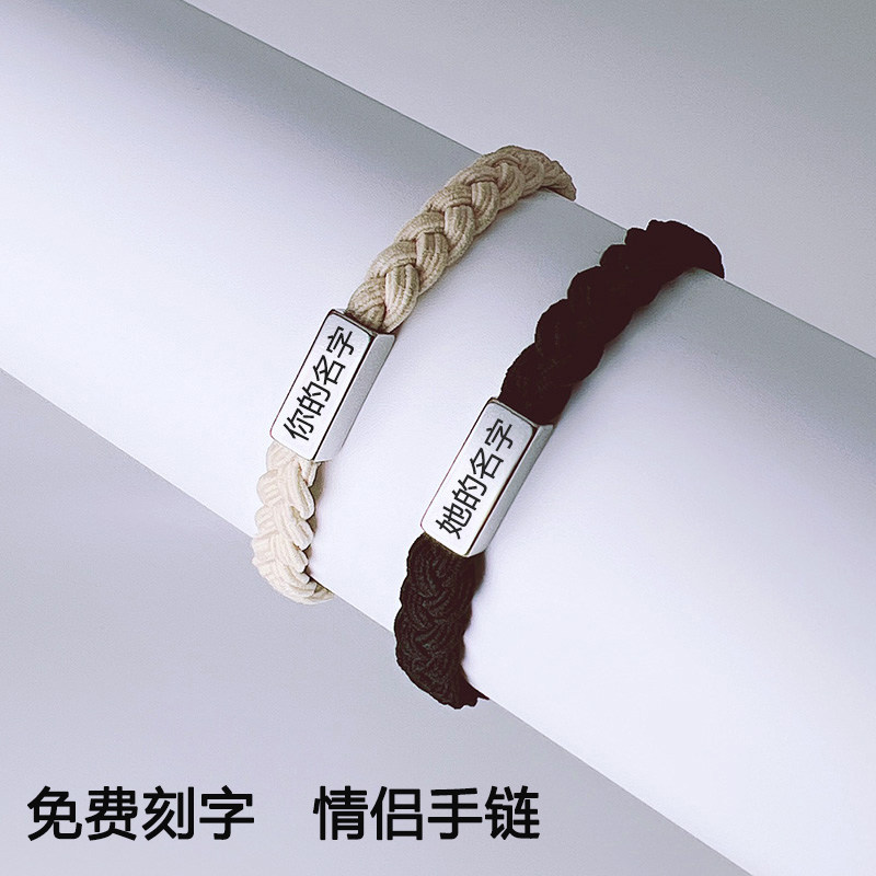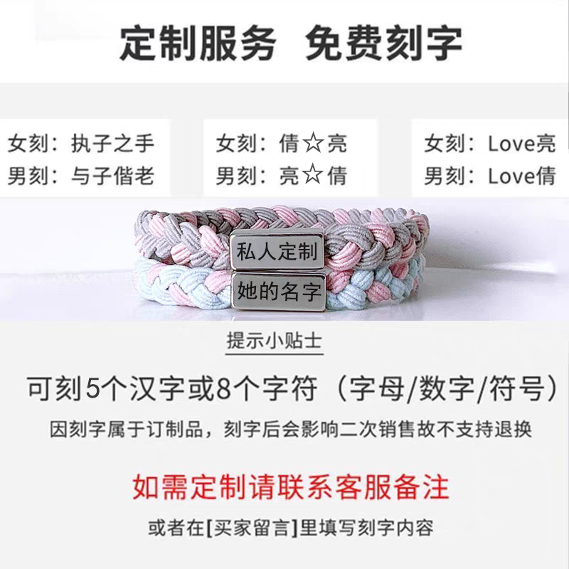 定制手链手绳刻名字小皮筋送男朋友闺蜜编织女头绳手腕专属礼物