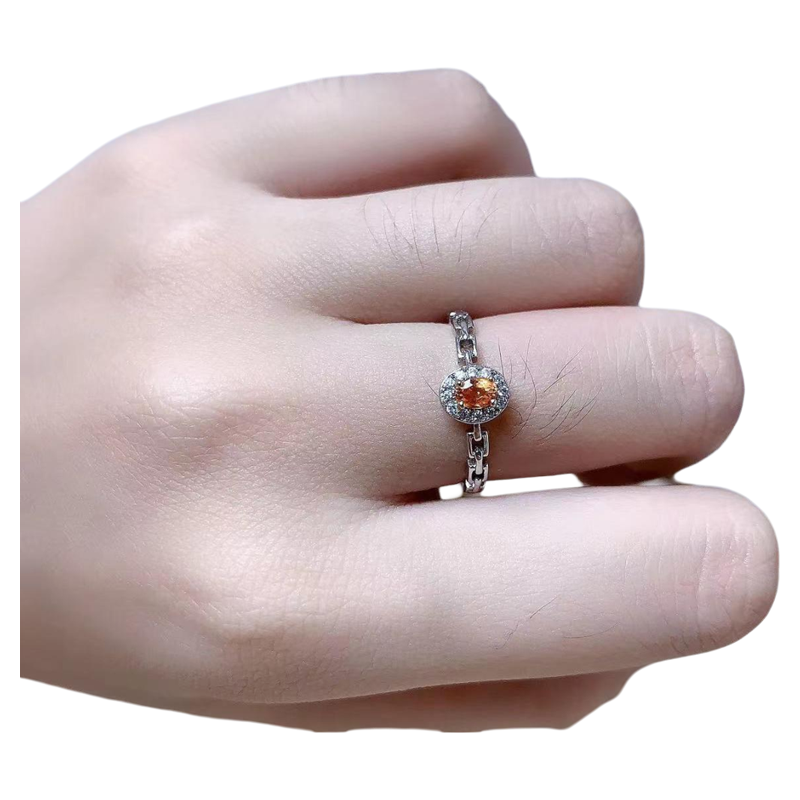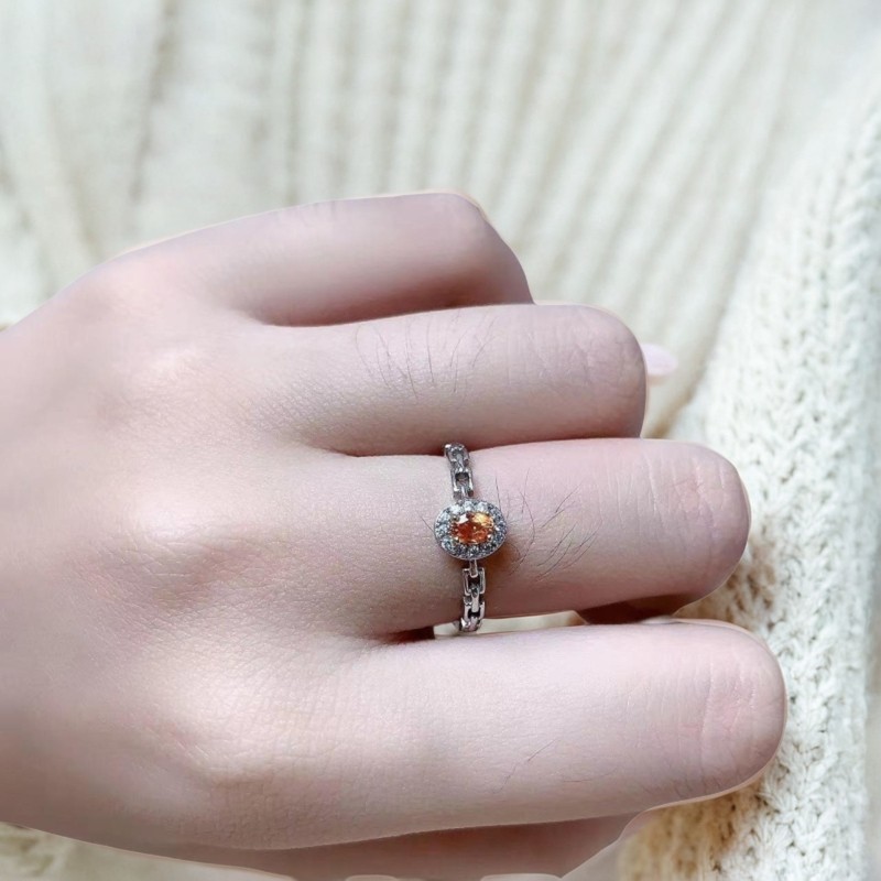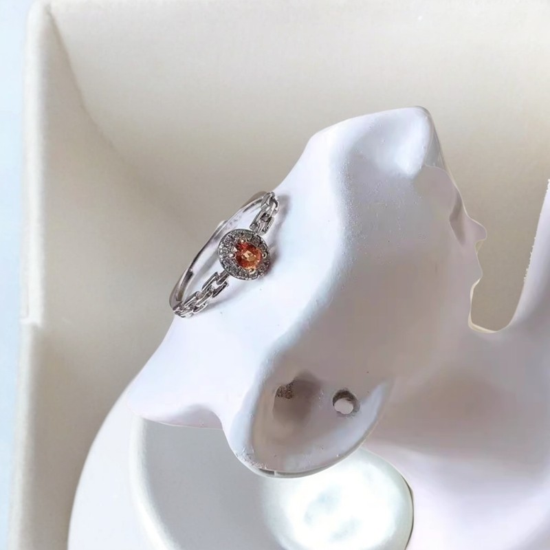 s925银饰品橙色蓝宝石戒指清新秀气网红女款开口可调节