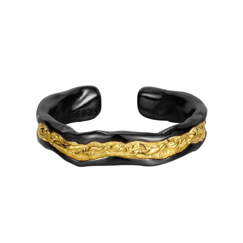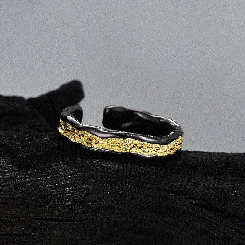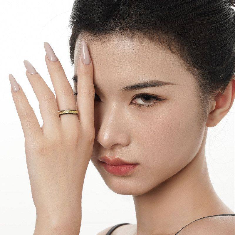 韩国风小众设计师款S925纯银熔岩肌理戒指女开口拼色指环