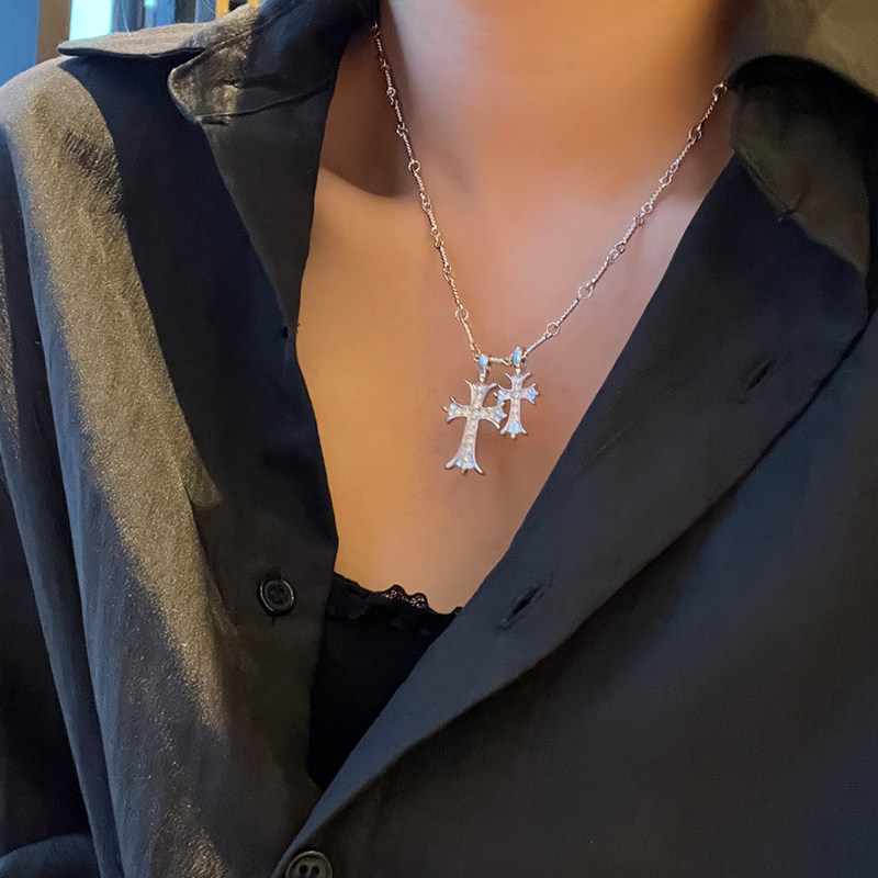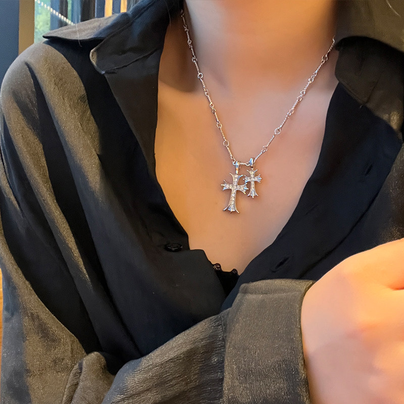 双十字架吊坠闪钻项链轻奢小众个性独特设计高级感秋冬毛衣卫衣链