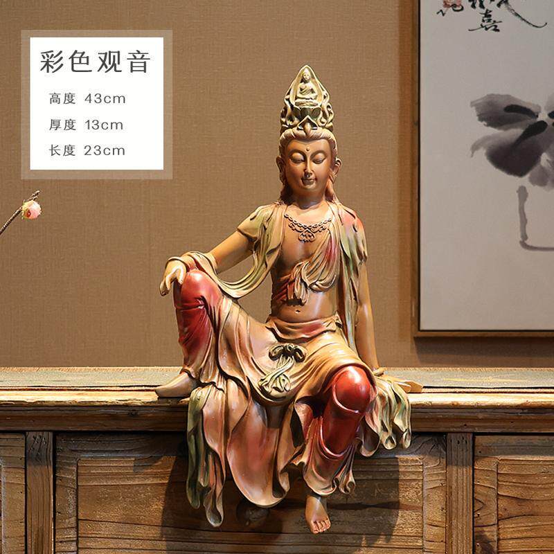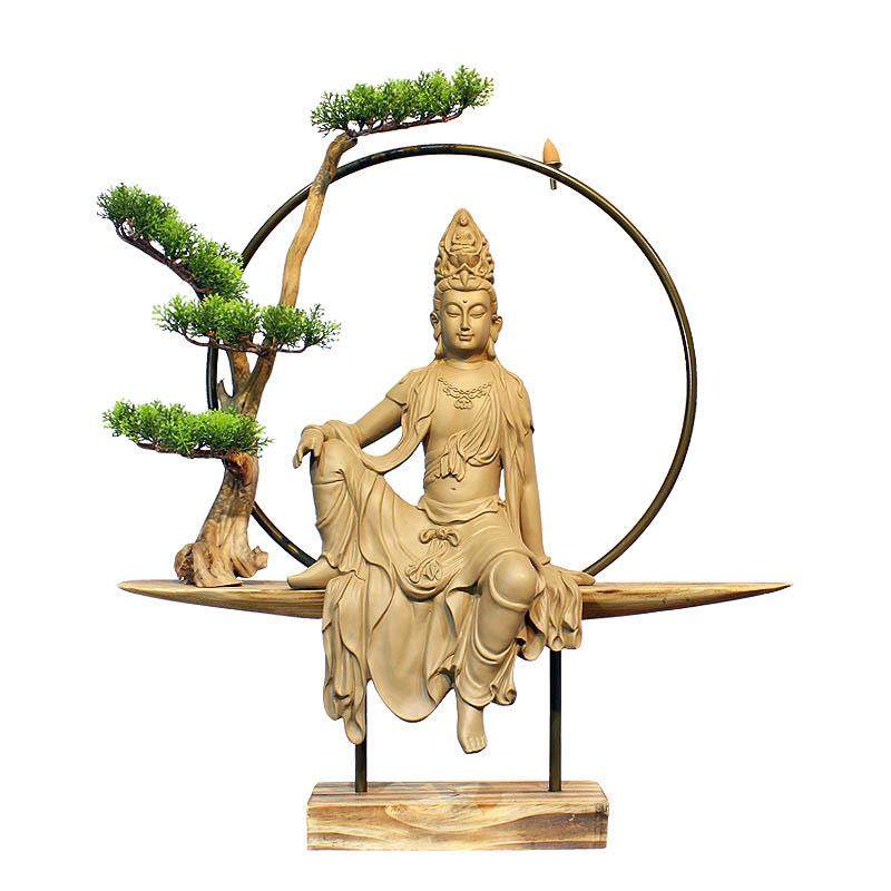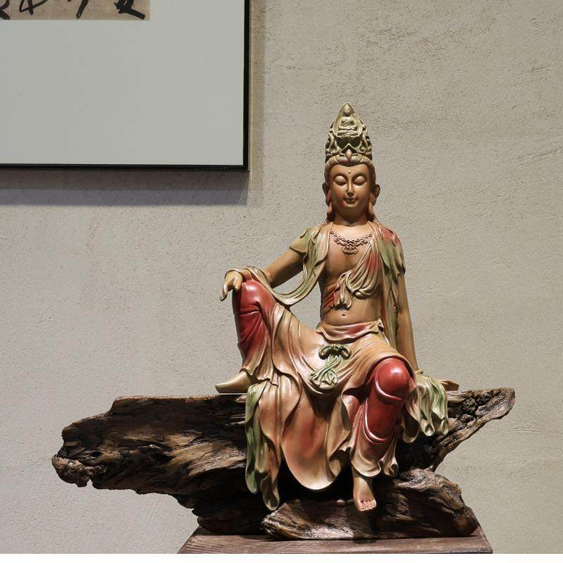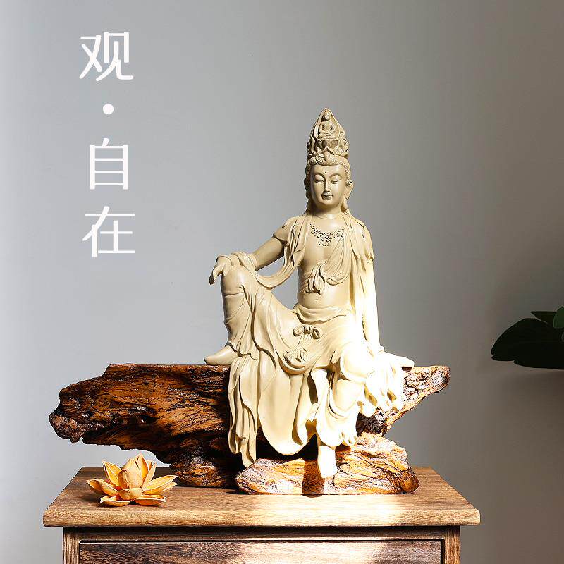自在观音佛像新中式禅意摆件客厅书房玄关办公室古法鱼缸家居装饰