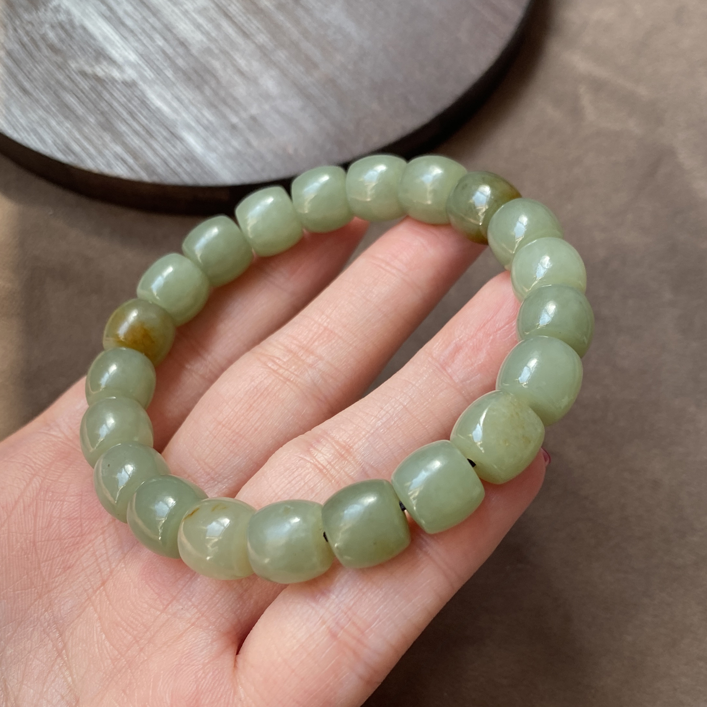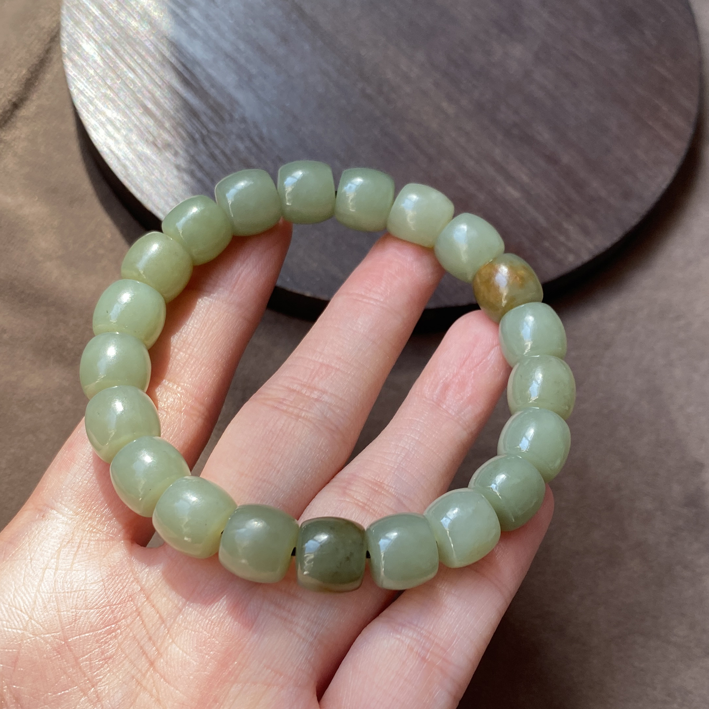 方言和田玉精品佩戴油润新疆且末蓝色山流水10MM老型珠手串手链A2