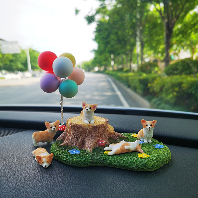 迷你柯基犬治愈系车载小摆件超萌卡通树脂仿真狗模型汽车内装饰品