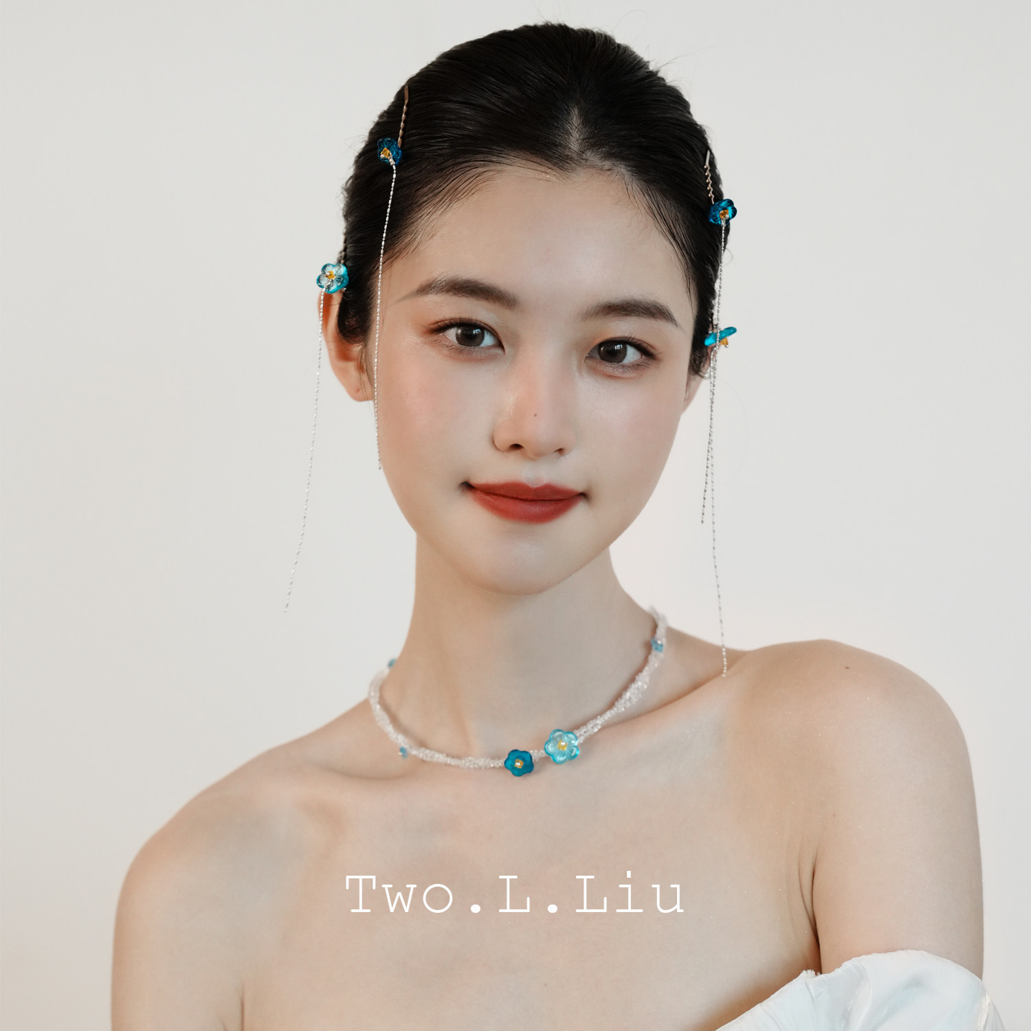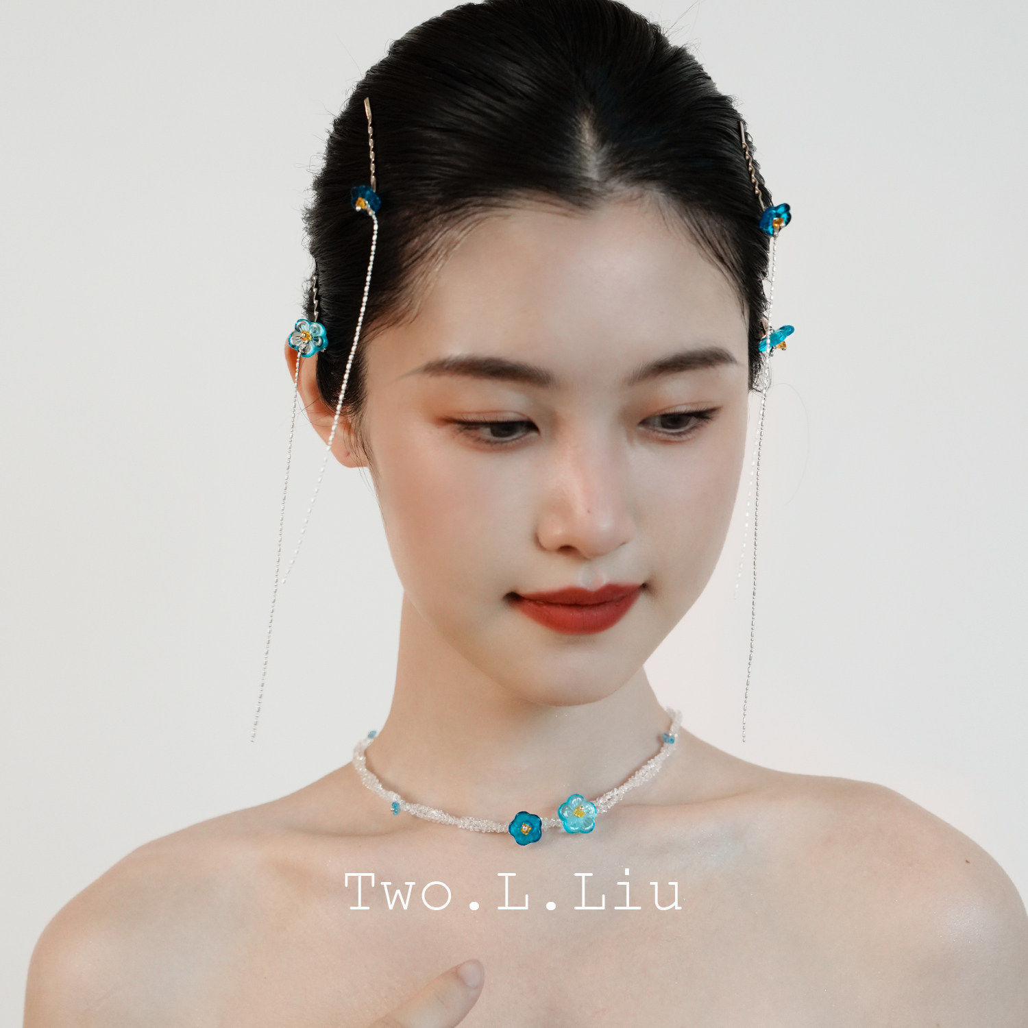 Two.L.Liu汀兰系列原创设计蓝色项链发夹套装进口捷克珠锁骨链