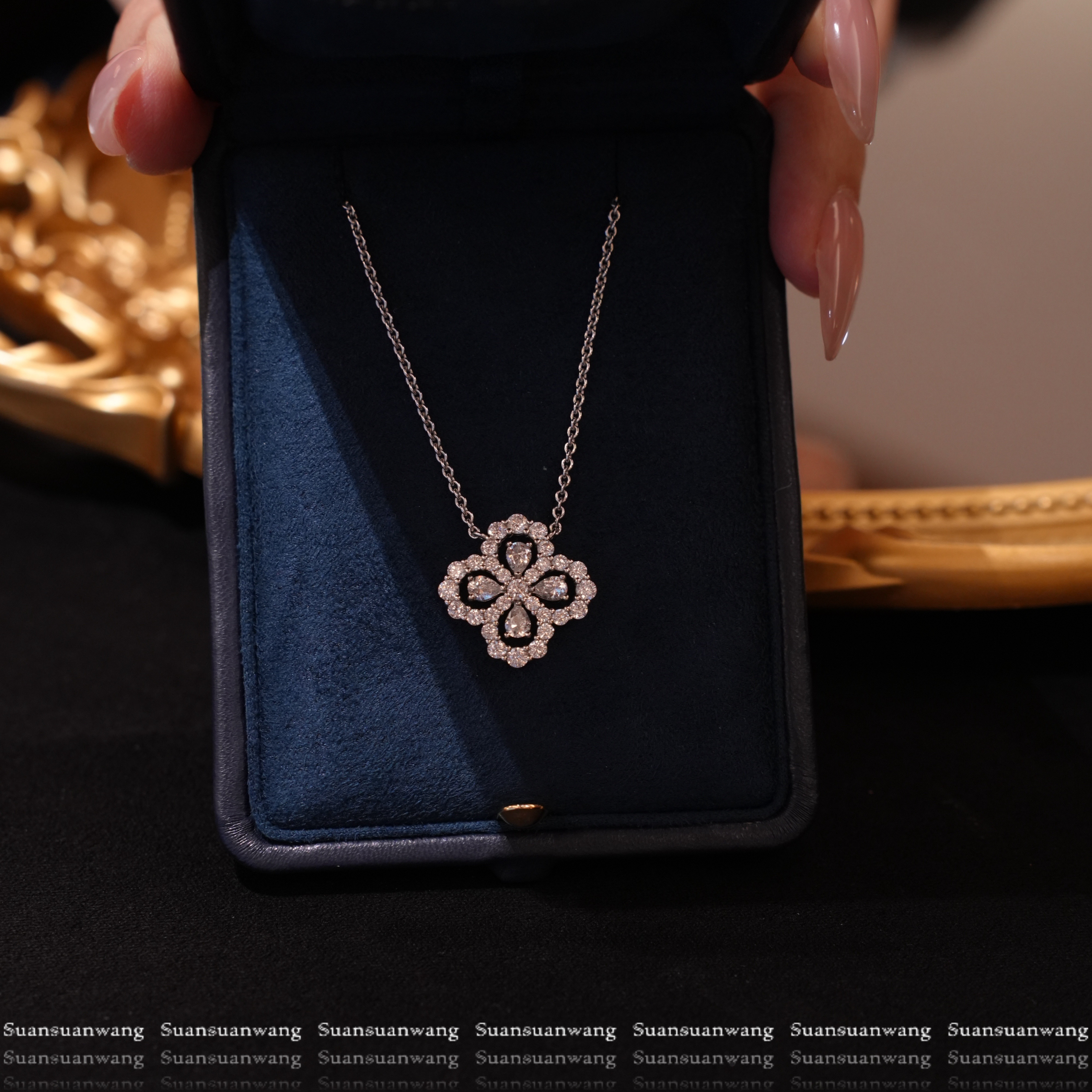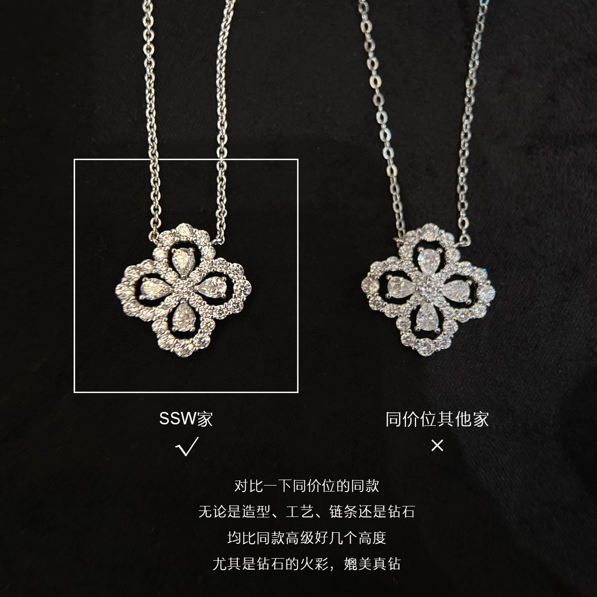 「秘密花园」D色5A仿真钻网红loop镂空四叶草满钻s925厚镀18k项链