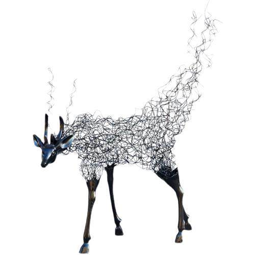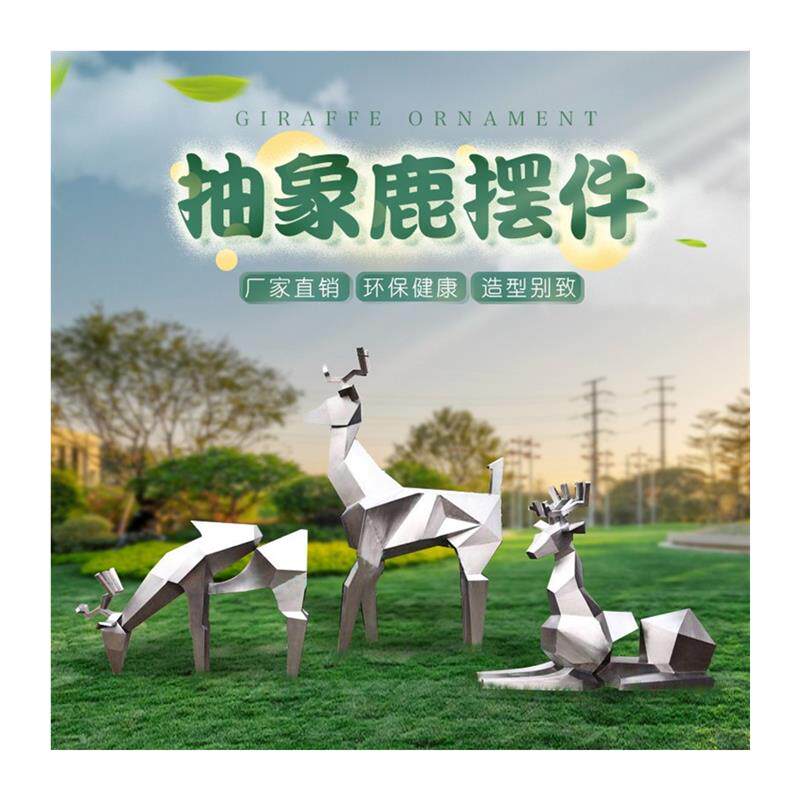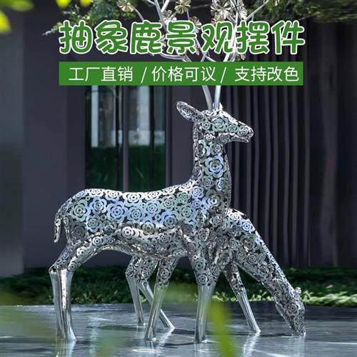 大型不锈钢镂空梅花鹿摆件园林景观别墅酒店会所装饰几何麋鹿雕塑