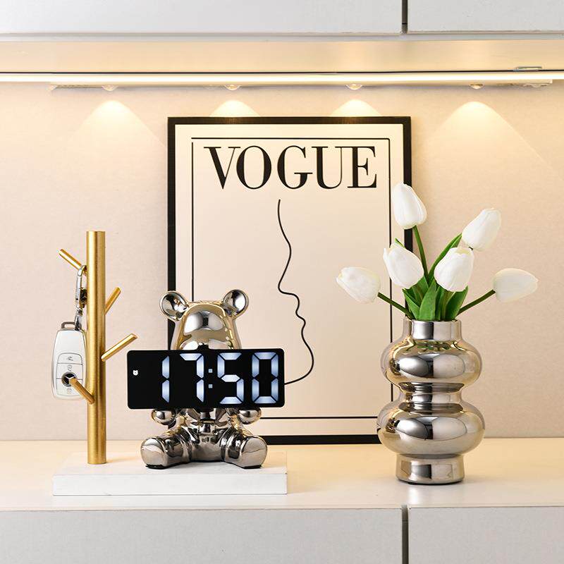 创意轻奢数字智能桌面台式钟表家居客厅卧室摆放电子钟台钟小摆件