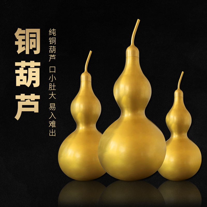 速发铜葫芦空心大小客厅摆件挂件纯铜卧室客厅送礼开业八卦铜葫芦