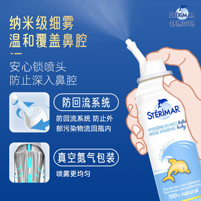【自营】舒德尔玛小海豚sterimar鼻喷100ml全家清洁洗鼻*2瓶鼻腔