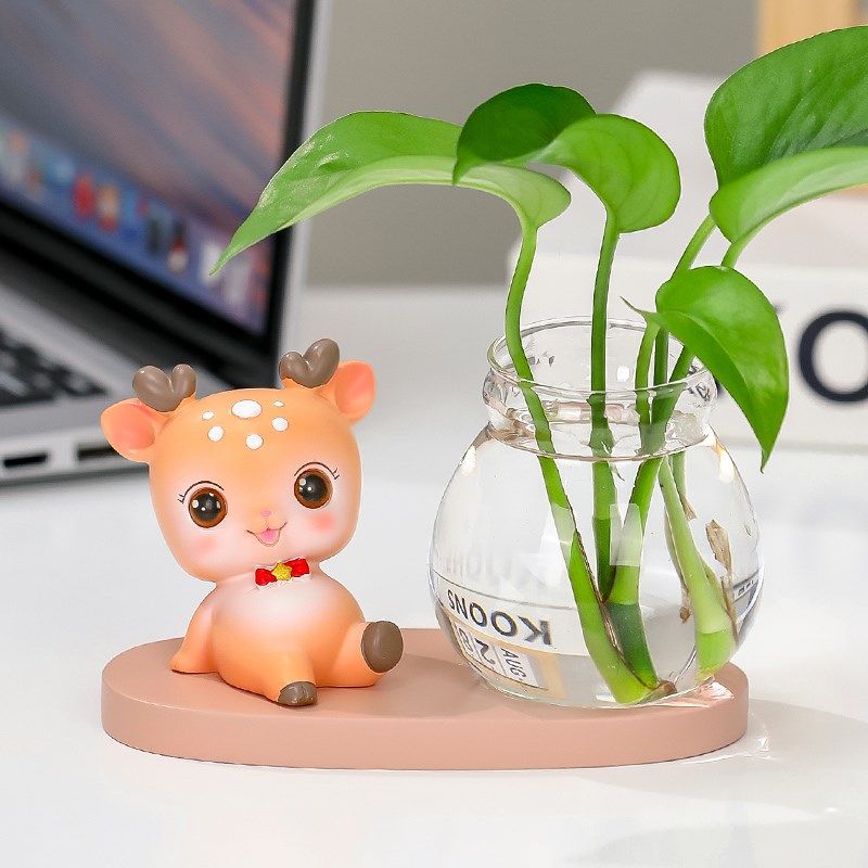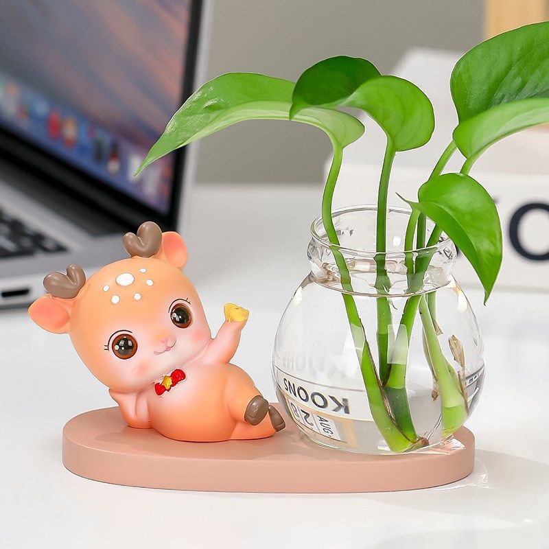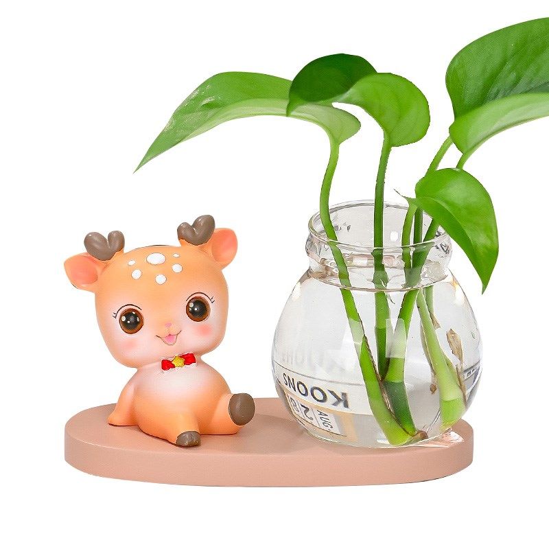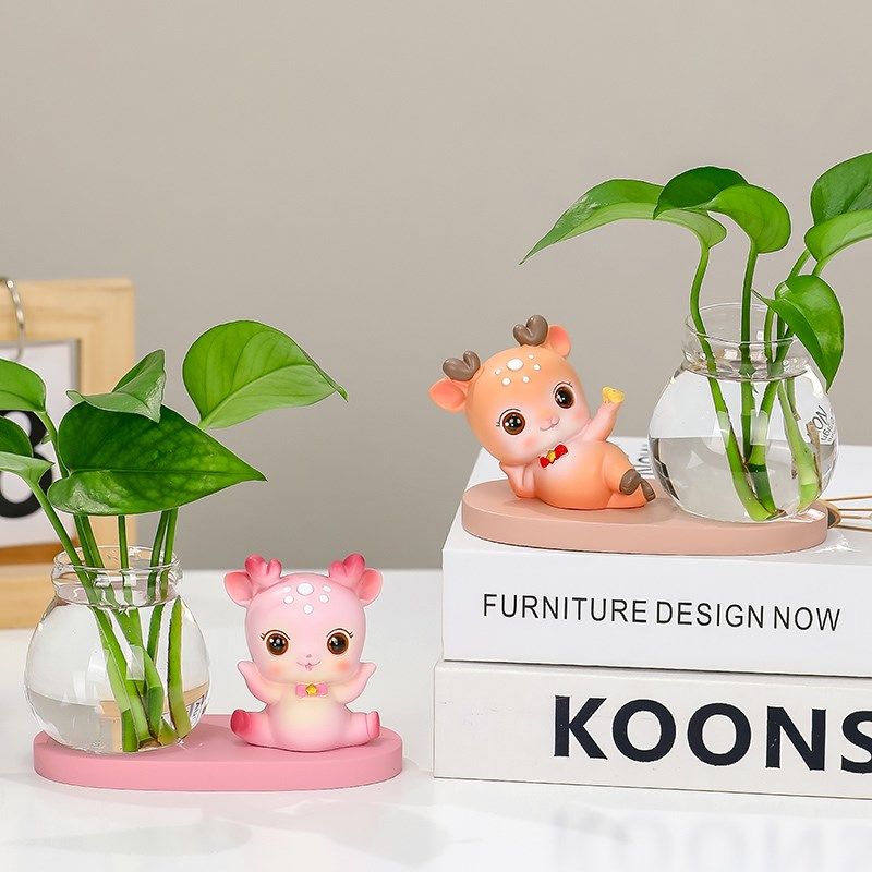 可爱治愈小鹿公仔花瓶客厅插花小摆件透明玻璃瓶绿萝水培桌面摆件