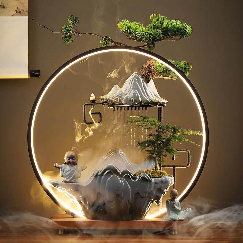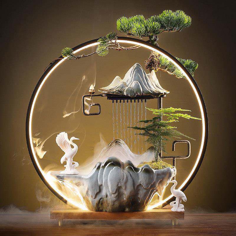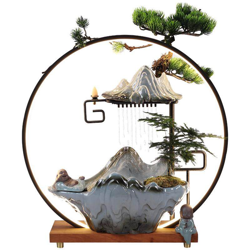 创意招财流水摆件客厅高端摆饰循环水喷泉办公室桌摆乔迁开 业礼