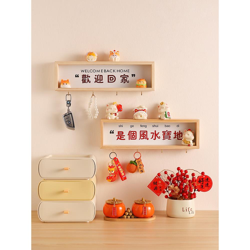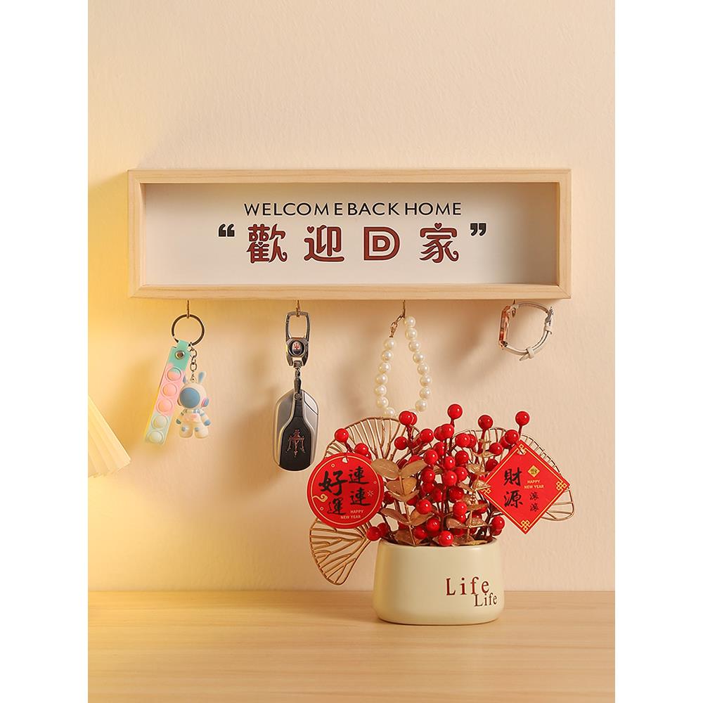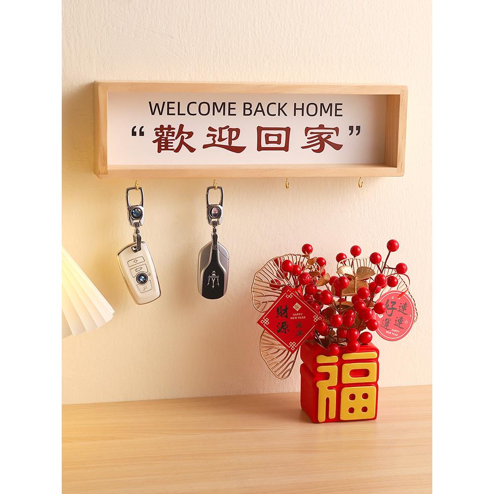 入户进门欢迎回家玄关钥匙收纳墙上置物架摆件房间客厅家居装饰品