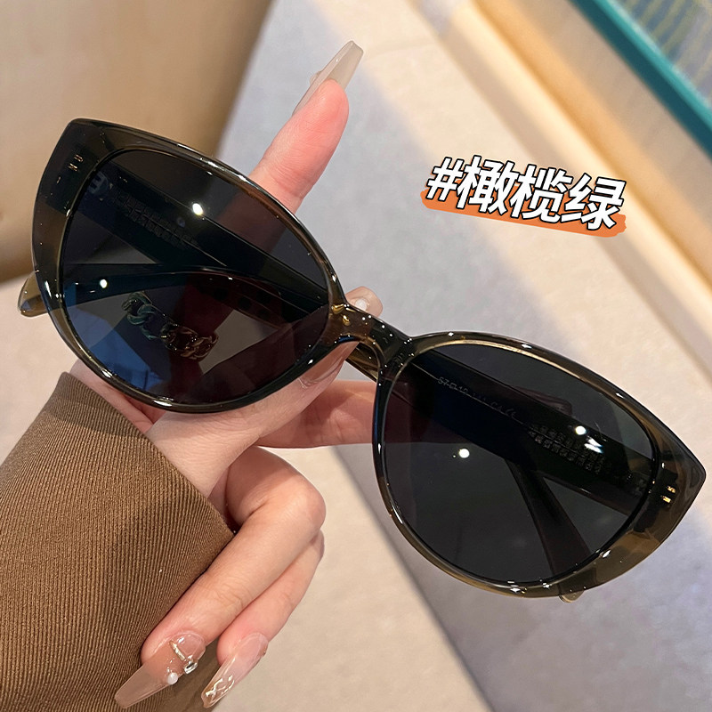 显白南瓜橘色猫眼偏光墨镜女款遮阳防紫外线可配近视大框太阳眼镜
