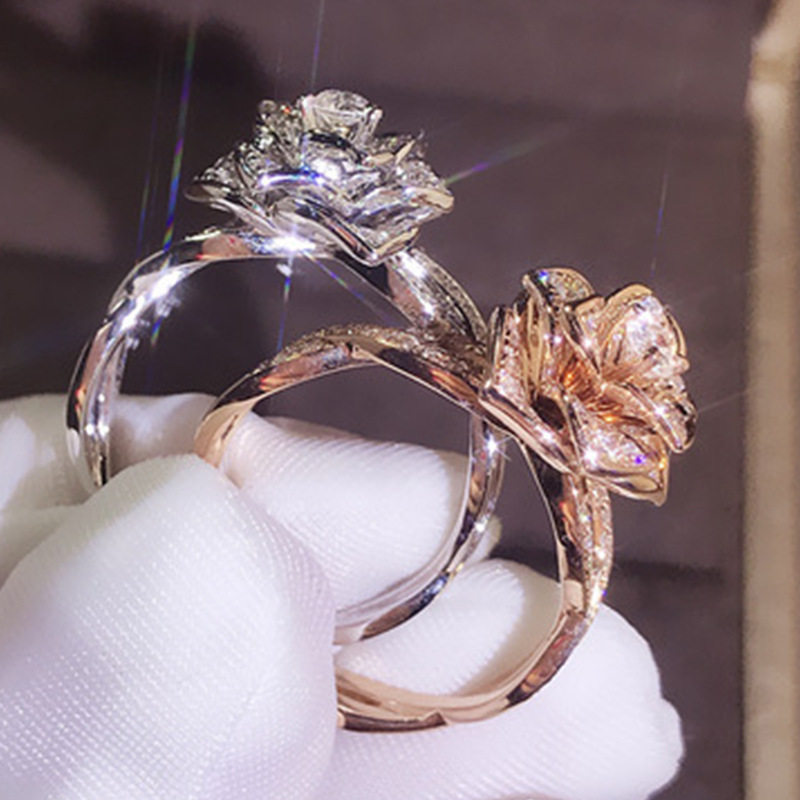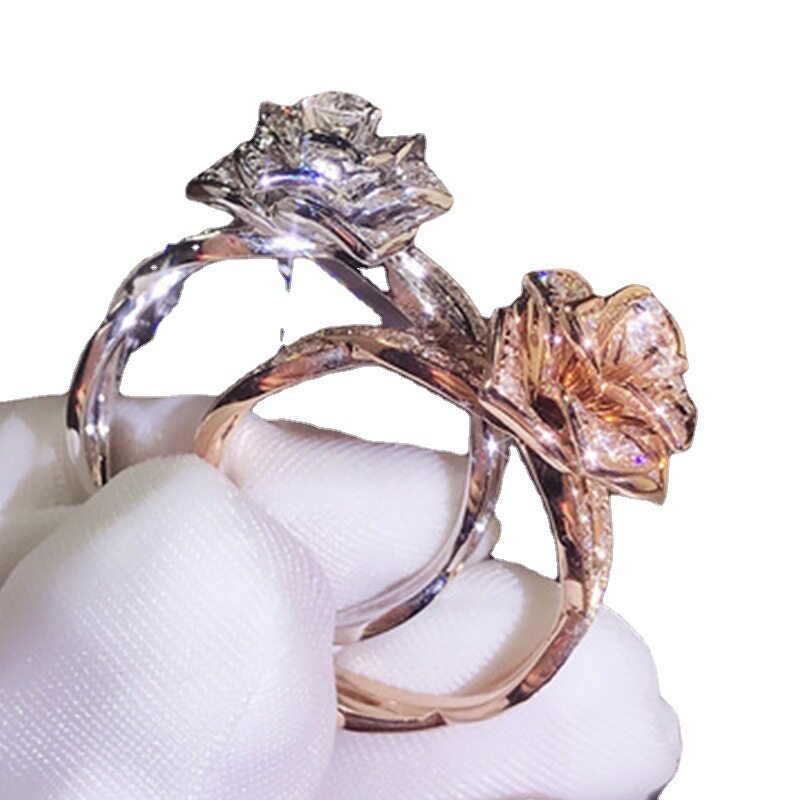 品欧美满钻微镶订婚wish热卖奢华镶钻花朵水晶锆石戒指女手饰