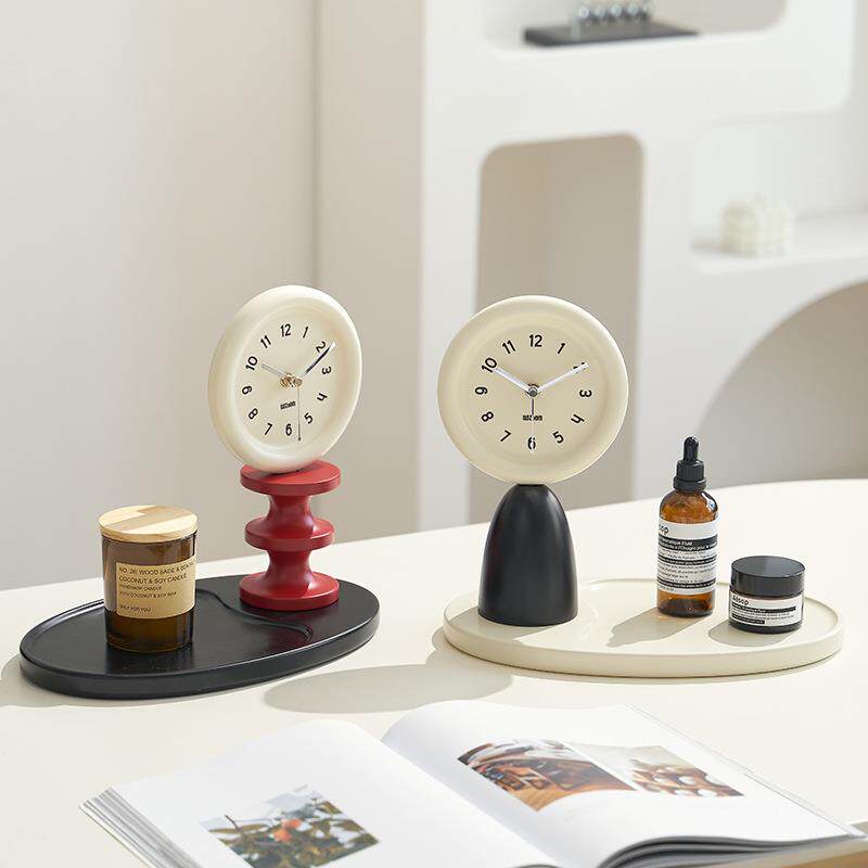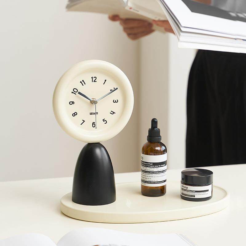 wozoom家奶客油风厅桌面TYOS374居时钟摆件玄关座盘钟托电视柜装