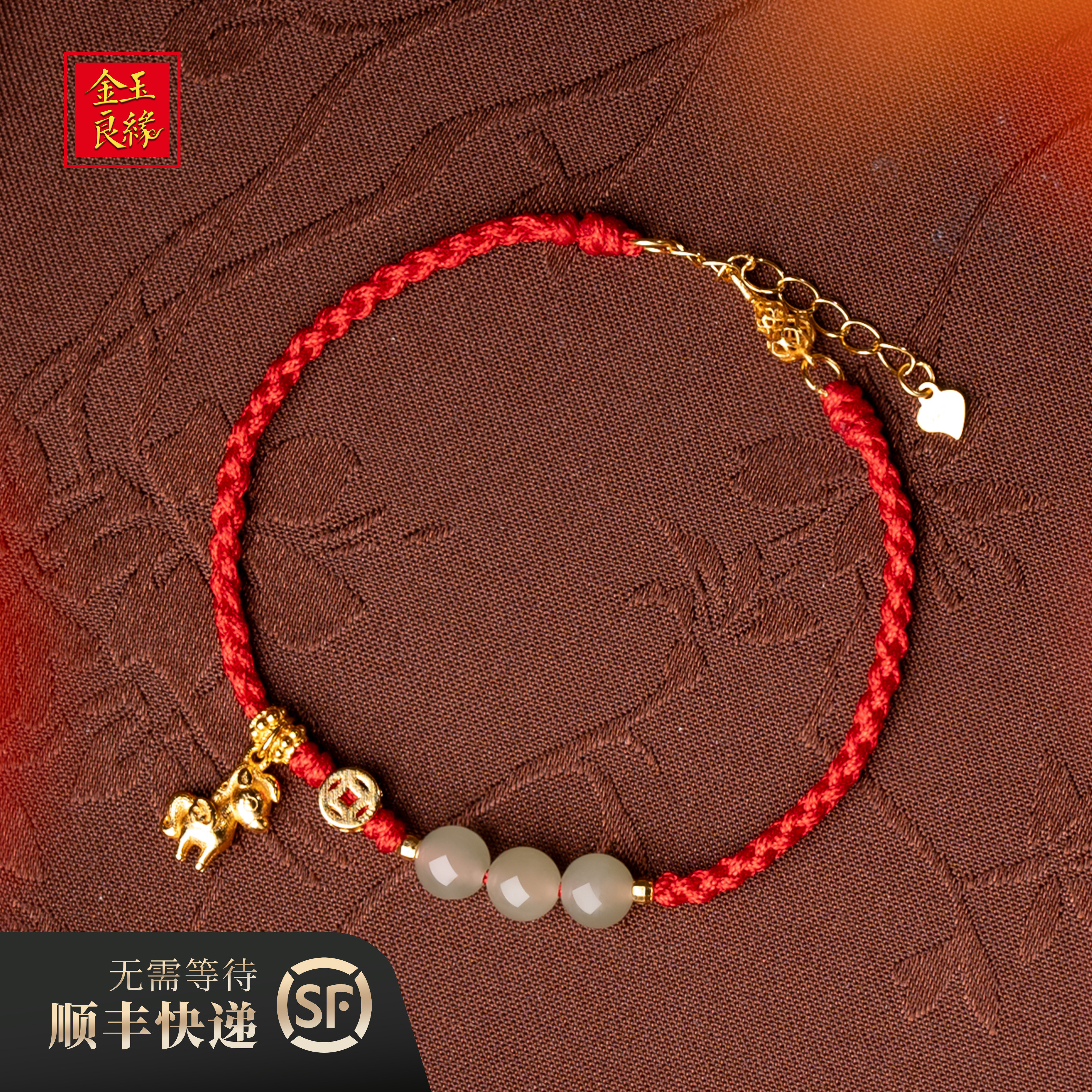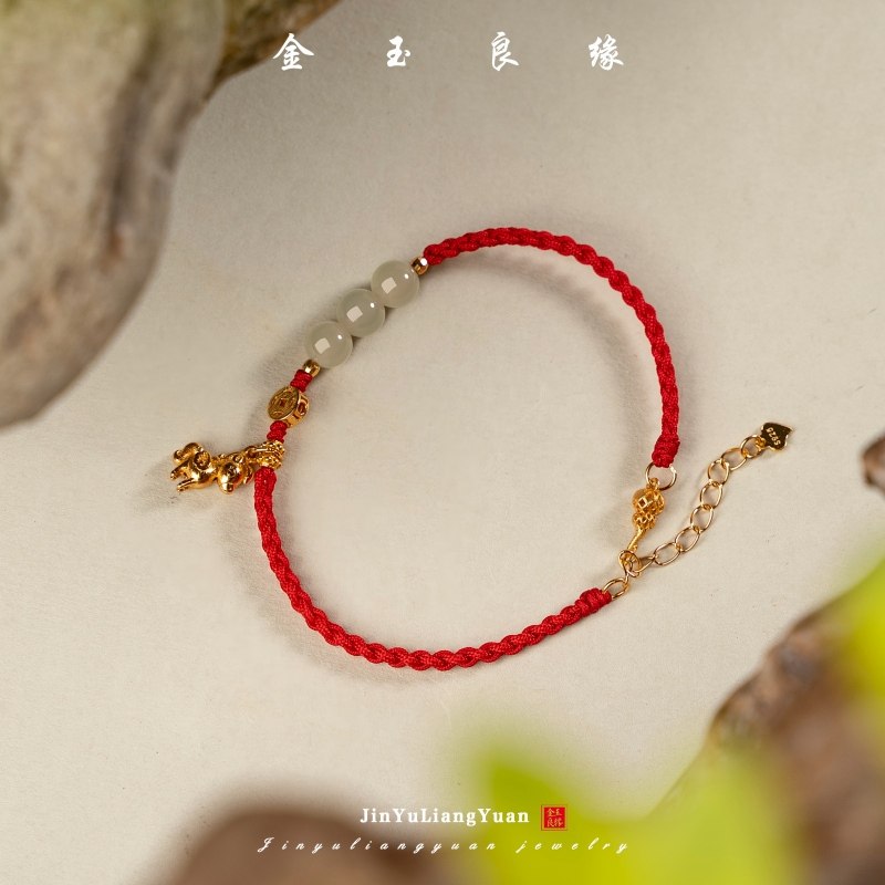 金玉良缘【马到成功】红绳手链小众设计感和田玉珠编925银