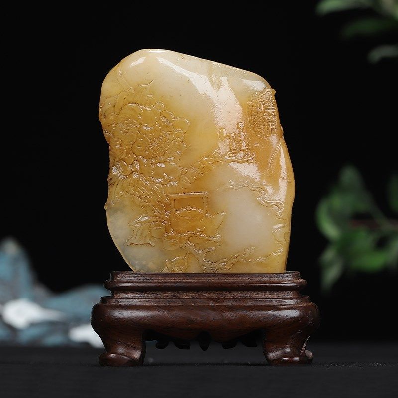 《花开富贵》寿山荔枝洞石 桌面摆件 送礼老师长辈领导端午节礼物