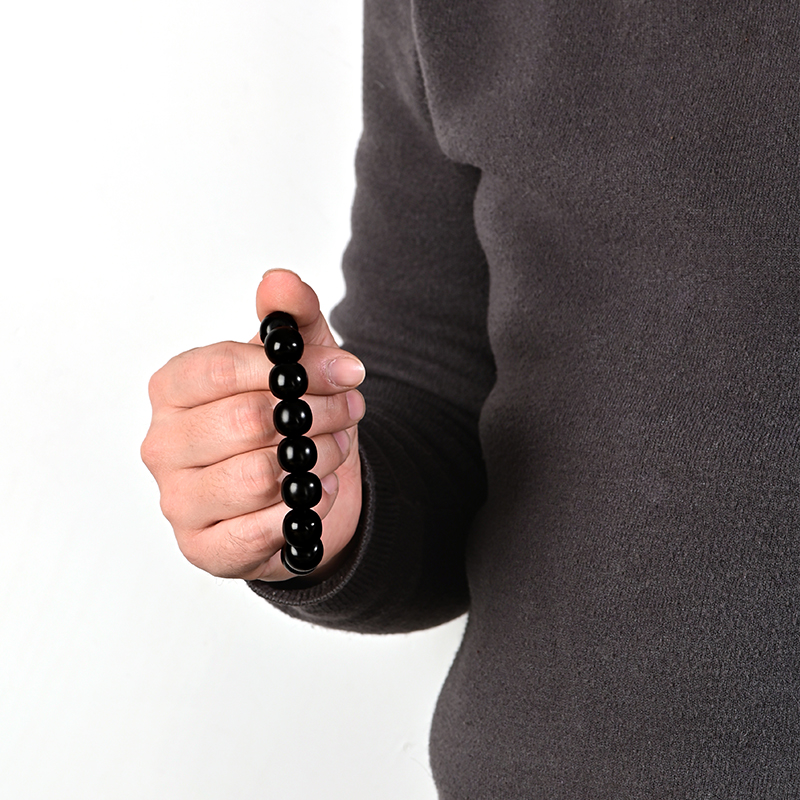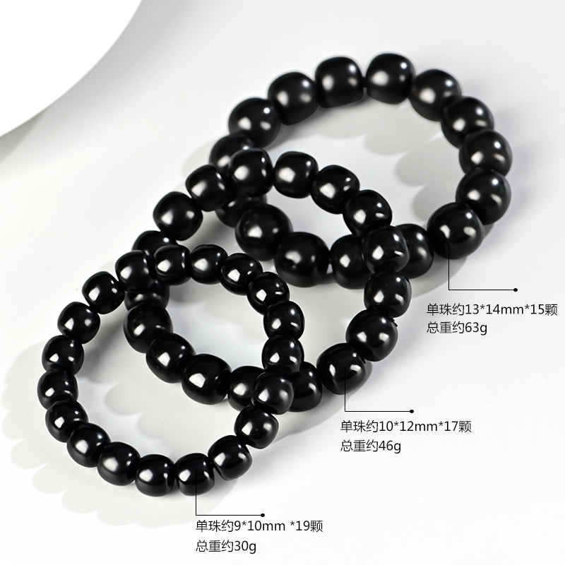 新疆和田玉黑羊脂墨玉老型珠手串男天然玉石手链女路路通手把件