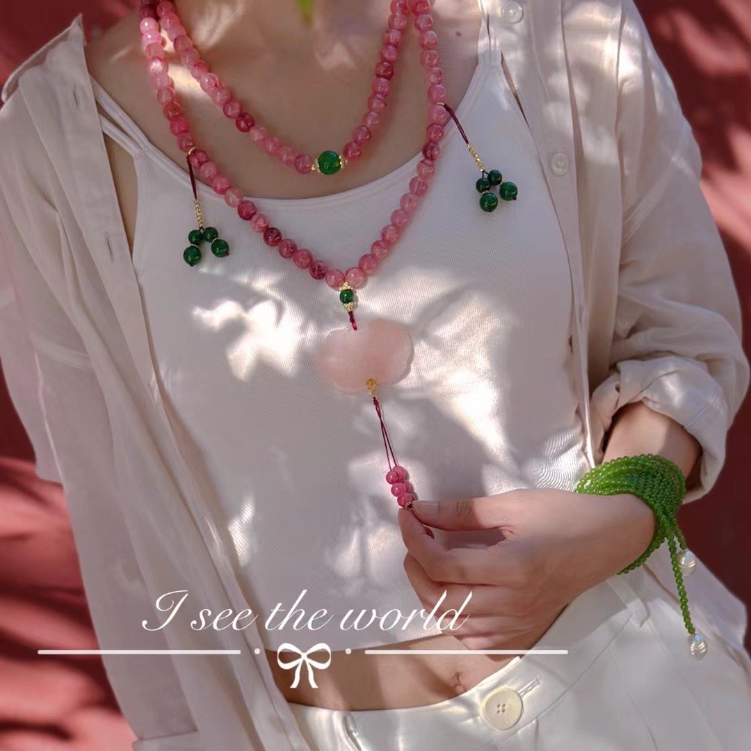 网红款小众原创设计时尚百搭波斯玉10mm粉色牡丹斜挎链背链项链