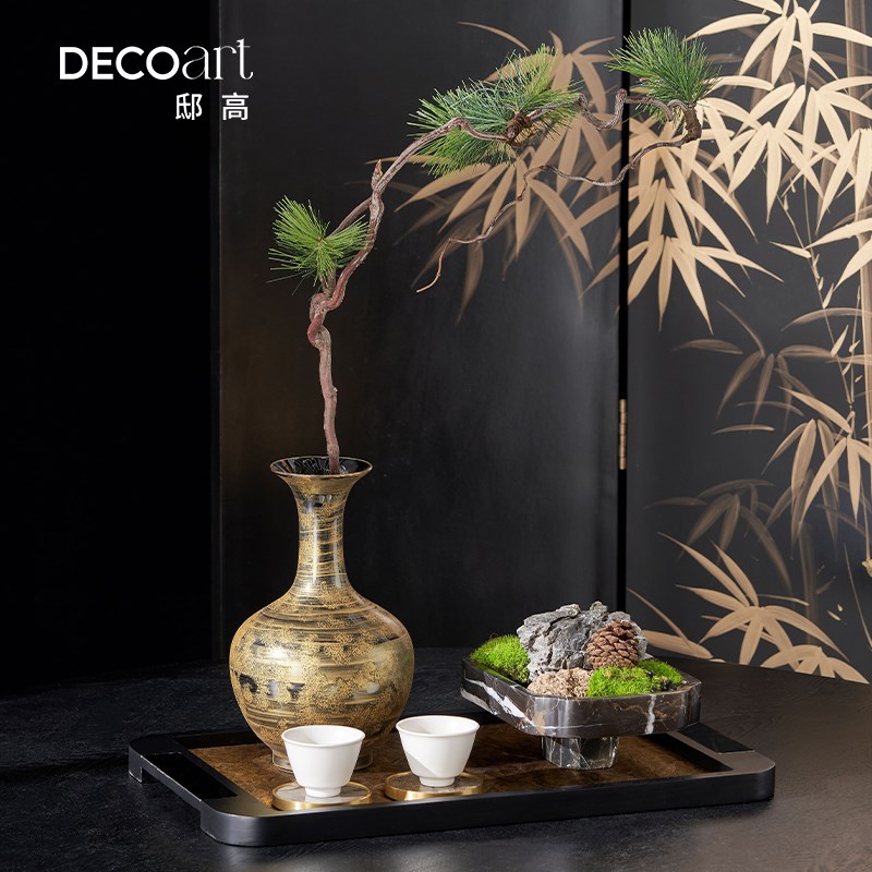 邸高中国风摆件装饰室内空间装修设计中式茶几意境花瓶高级感插花