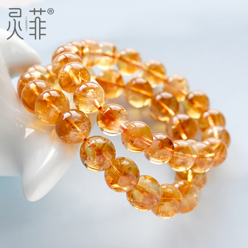 天然巴西暴力黄黄水晶手链7-12mm黄塔晶黄色水晶单圈原石手串男女