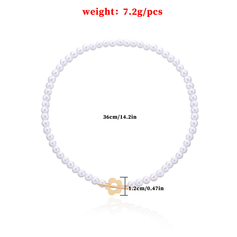 欧美饰品 潮流简约ins短款珍珠锁骨链 气质时尚花朵OT扣项链首饰