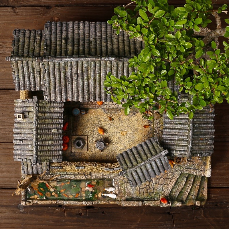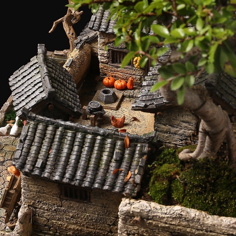 中国风微景观盆景造景禅意复古y房屋花盆创意微缩建筑模型桌面摆