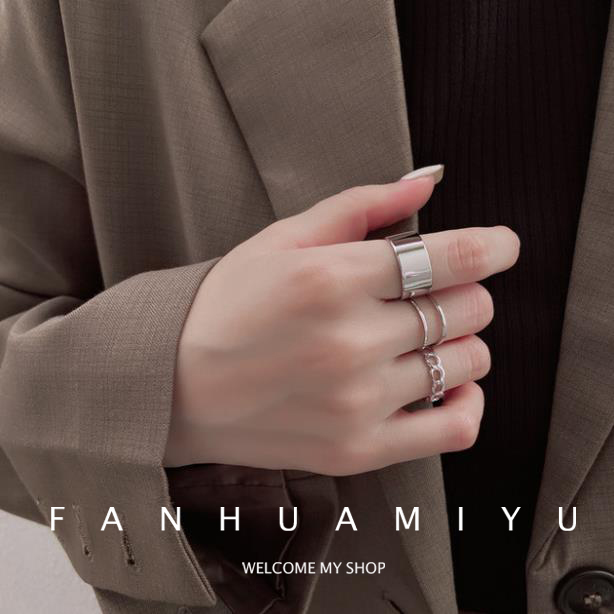 三件套素圈戒指女小众设计轻奢冷淡风高级感简约ins潮食指指环