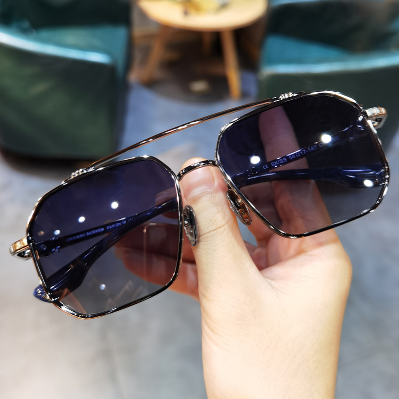 新品简丹萝心复古太阳眼镜男女个性双梁多边形大框墨镜防紫外线