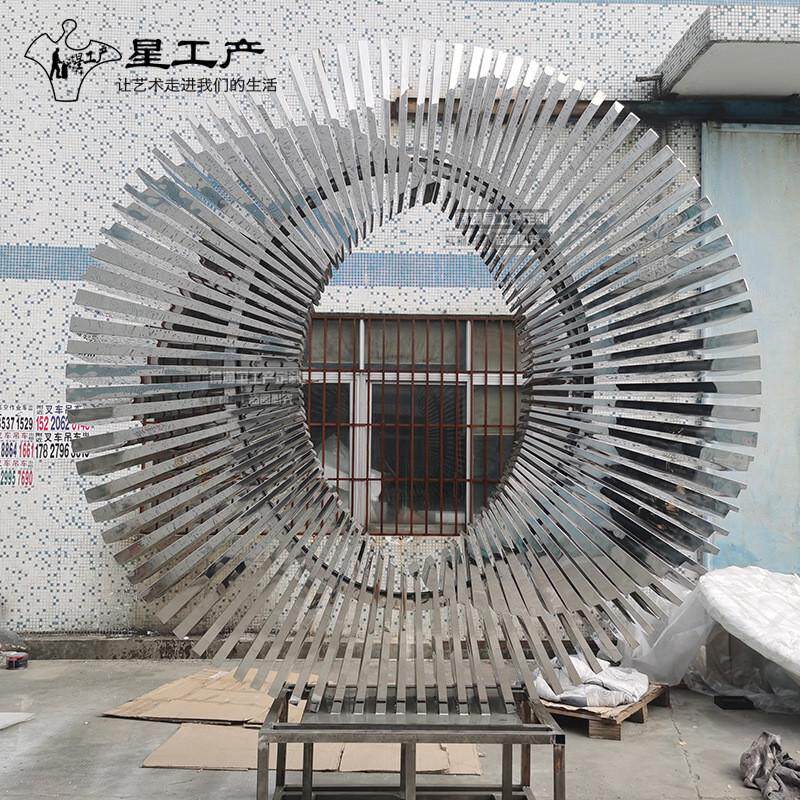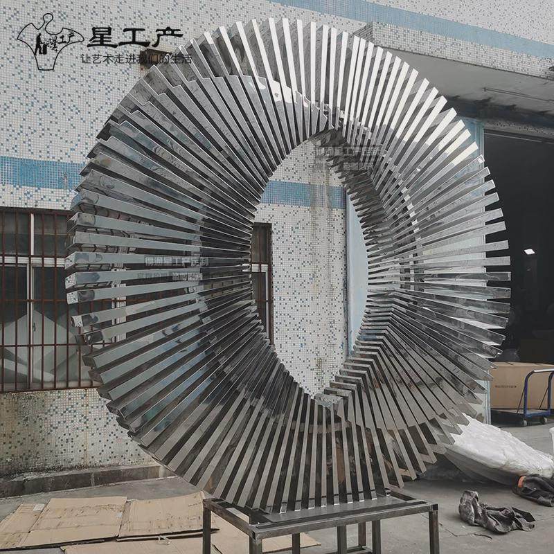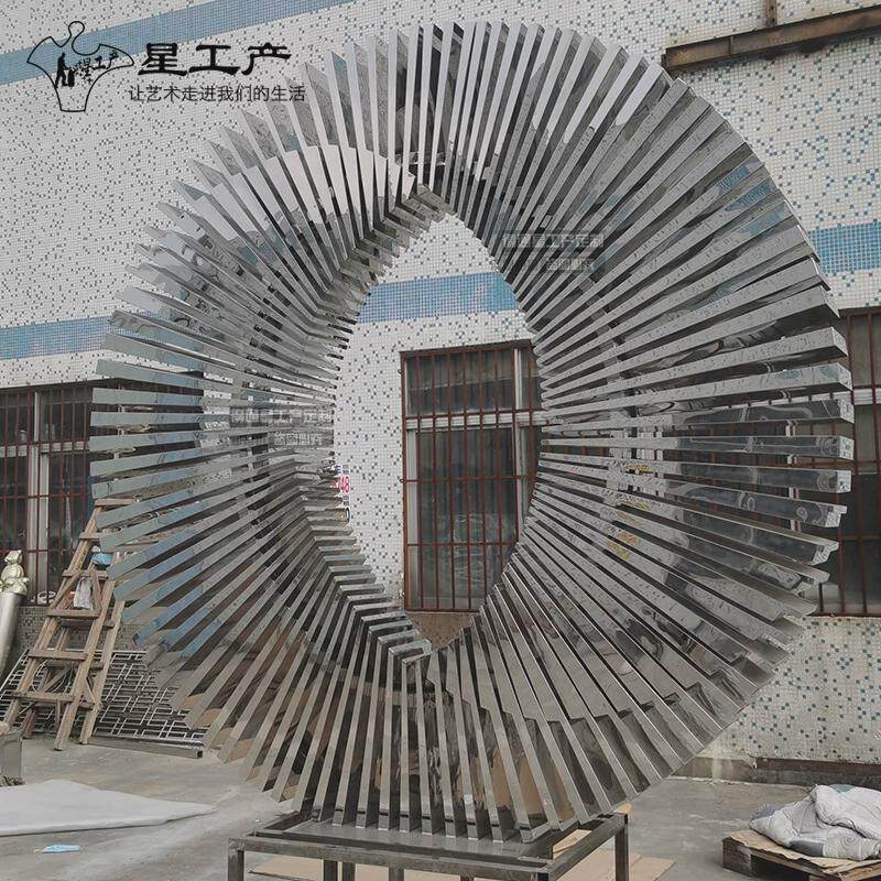不锈钢圆圈景观工程美陈售楼处入口雕塑摆件厂家设计软装水景摆件